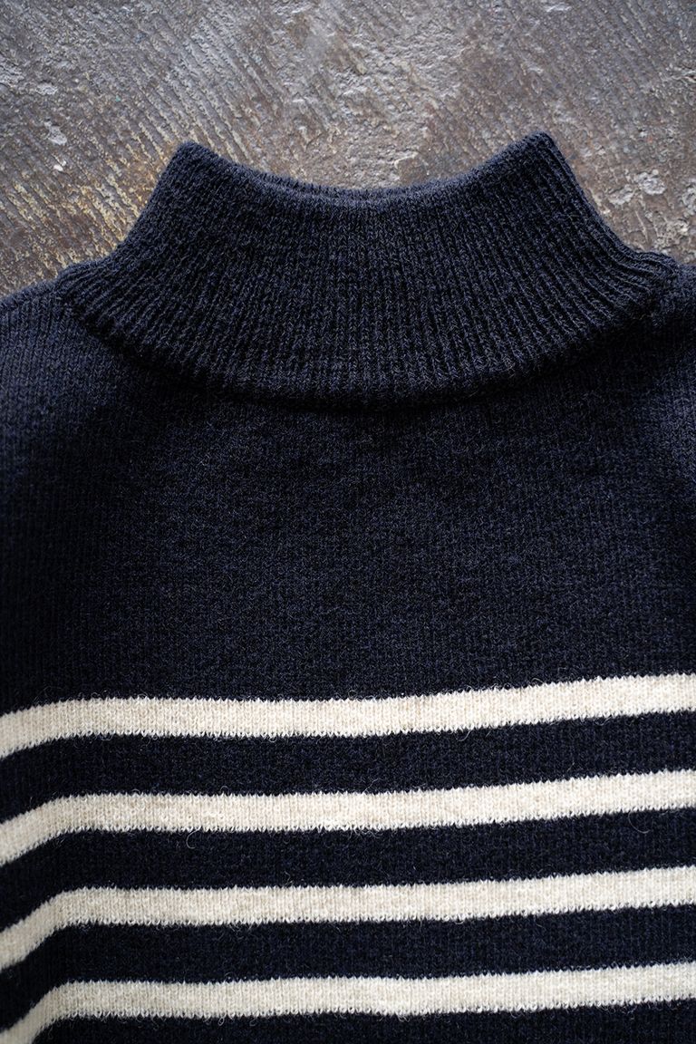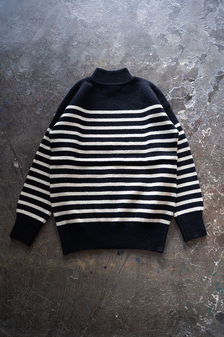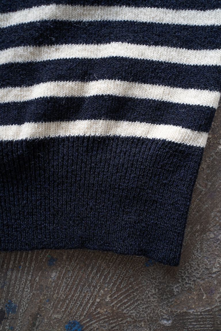 Hard twisted Shetlandwool GOB sweater(NAVY×WHITE)