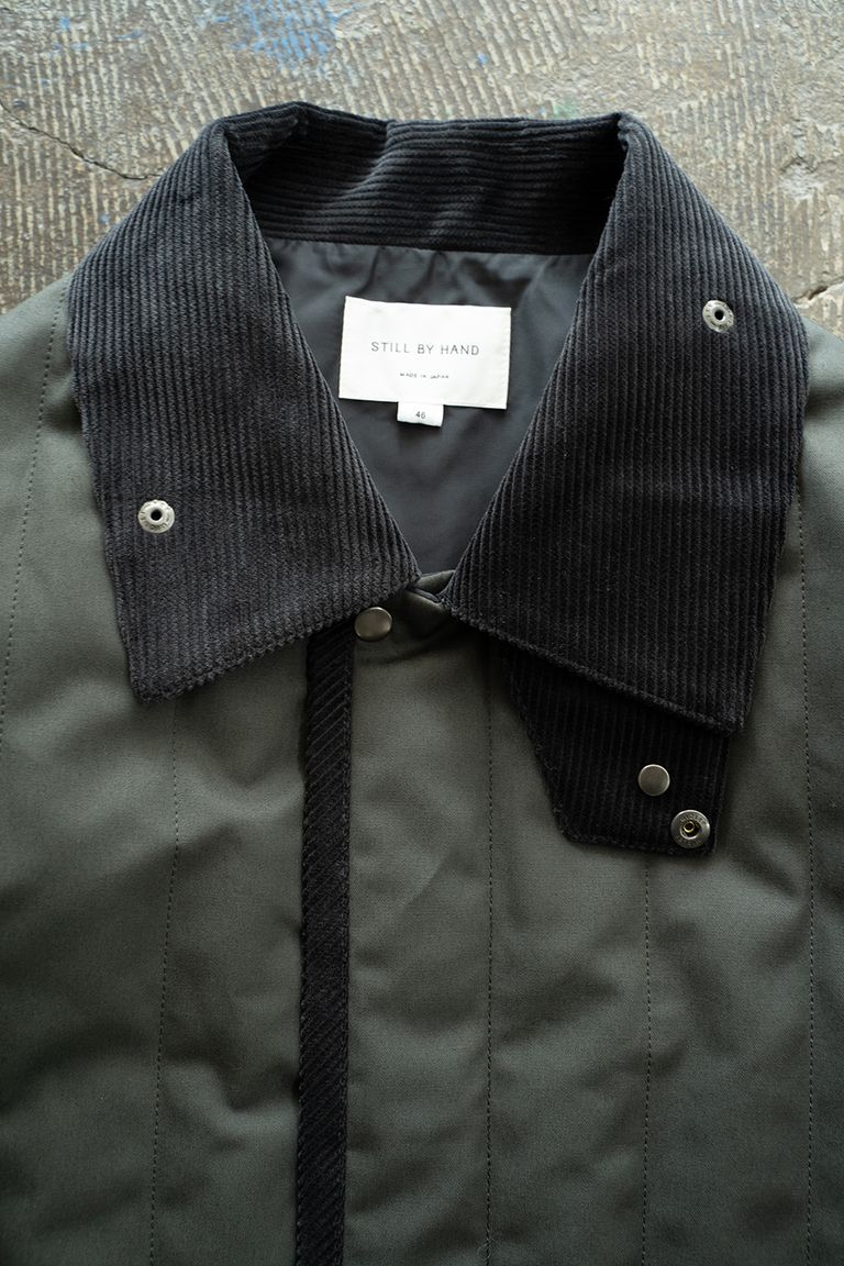 新入荷 STILL BY HAND 【25AW】コーデュロイ切り替えシンサレートキルティングブルゾン(GREEN CHARCOAL) ¥47,300 税込 430 ポイント還元 発送目安日:即日 この商品は 送料無料 でお届けします 注文 サイズ(採寸)情報 質問する お気に入り コーディネートをリクエストする お電話でもご注文いただけます!お電話の際は 商品番号:4988 をお知らせください。 電話をかける 076-254-5068 サイズ 肩幅 着丈 身幅 袖丈 46 57.5 79 65 55 48 59.5 81 67 56 単位:cm 商品説明 上品な見た目で保温性にも優れた生地こちらの作品では、綿100%のツイル生地を使用しております。細やかな綾目が美しく、光沢が目を惹く上品な生地です。撥水性も持つ高機能さが魅力です。シンサレートをキルティングしており、保温性にも優れております。クラシカルなデザインを都会的にブラッシュアップフロントのコーデュロイのパイピングが英国の老舗キルティングジャケットを想起させるデザインでありながら、ポリエステルでは無く前述の様に細かな綾目が美しい綿ツイル生地を使用。ダイヤモンドキルティングでも無く縦のラインのキルティングにすることでシャープな印象に仕上げております。また、襟元にはチンストラップを付けて英国老舗ハンティングジャケットの様な無骨なイメージも加えております。肩周りにはゆとりがあり、ボリュームのあるニットの上にも羽織ることが出来て、寒い時季までしっかりと活躍する作品です。 お取り寄せについて 在庫の無い商品や、サイズ、カラーに関しましてのお取り寄せも承っておりますので、本商品ページの「質問する」よりお気軽にご連絡くださいませ。(最短で翌々日のお届けが可能です。) サイズ選びでお迷いの方へ サイズ選びに不安のある方は、身長や体型等をお伺いして、どのサイズが適正か総合的に判断しアドバイスさせて頂きますので、お気軽にお問い合わせ下さい。適正と判断したサイズの在庫が当店に無く、お取り寄せも出来なかった場合は他店を探して頂くことになりますが、ベストサイズの追求に誠心誠意努力致します。メール、お電話どちらでもお待ちしております。 International shipping -HOW TO ORDER- We thank you for visiting our online store.Please note that we are not able to accept international shipping through our website. If you would like to ship your order overseas, please go to this page. 詳細情報 カラー グリーンチャコール 素材 表地:綿100% 裏地:ナイロン100% 中綿:ポリエステル100% 別布:綿100% 生産国 日本 ブランド STILL BY HAND 品番 CO02253 カテゴリ ジャケット・アウター > ブルゾン 性別 男性 返品 返品可能条件はこちら ラッピング 可能 発送目安日 即日 配送方法 佐川急便(送料について) お支払い方法 本商品でご利用可能な決済方法は下記となります。各お支払い方法についての詳細はショッピングガイドをご覧ください クレジットカード決済 セキュリティコードとはクレジットカード裏面のサイン欄上部に記載されている数字の一番右の3桁の数字です。アメリカン・エキスプレス・カード提携のクレジットカードの場合、セキュリティコードはクレジットカード表面に記載されている4桁の数字となります。 代金引換 銀行振込 サイズ(採寸)情報 サイズ 肩幅 着丈 身幅 袖丈 46 57.5 79 65 55 48 59.5 81 67 56 単位:cm このアイテムをシェア この商品について質問する