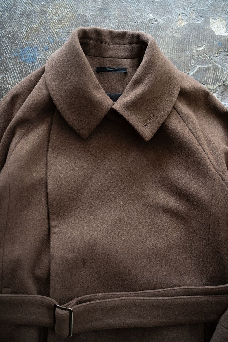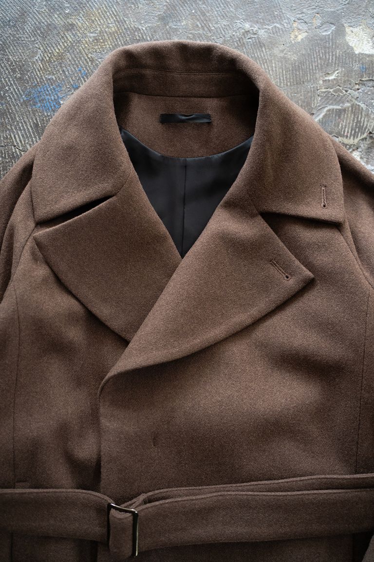 新入荷 juha 【25AW】Belted Over Coat/ベルテッドオーバーコート(BROWN) ¥86,900 税込 790 ポイント還元 発送目安日:即日 この商品は 送料無料 でお届けします 注文 サイズ(採寸)情報 質問する お気に入り コーディネートをリクエストする お電話でもご注文いただけます!お電話の際は 商品番号:5004 をお知らせください。 電話をかける 076-254-5068 サイズ 裄丈 着丈 身幅 3 84 118 60 4 87 125 62 単位:cm 商品説明 多彩な着方をお愉しみ頂けるデザインしっかりと大きなラペルがクラシカルな印象のベルテッドコートです。襟は開いても、立てて閉じても着用出来て、それぞれで全く異なる雰囲気をお愉しみ頂けます。また、ウエストのベルトを取り外して、たっぷりとした着丈と身幅を存分に活かしたリラックスシルエットでも着用可能です。両脇部分にのみベルトループを配置することでその存在を感じさせず、ウエストベルトを取り外した際に自然な見え方となります。裾には深いスリットが入り、ロング丈でありながらも足さばきが良く、見た目にも軽快な印象に仕上げております。後述の様に柔らかな生地を使用したことによりドレープ感が美しく、歩いた際の裾の動き方も魅力です。柔らかく、滑らかな肌触りの生地こちらの作品では、Super100'sウールの糸で織り上げたメルトン生地を使用しております。柔らかな落ち感があり、滑らかな肌触りが魅力の生地です。保温性にも優れ、ゴワつかず、非常に快適な着心地をお愉しみ頂けます。 お取り寄せについて 在庫の無い商品や、サイズ、カラーに関しましてのお取り寄せも承っておりますので、本商品ページの「質問する」よりお気軽にご連絡くださいませ。(最短で翌々日のお届けが可能です。) サイズ選びでお迷いの方へ サイズ選びに不安のある方は、身長や体型等をお伺いして、どのサイズが適正か総合的に判断しアドバイスさせて頂きますので、お気軽にお問い合わせ下さい。適正と判断したサイズの在庫が当店に無く、お取り寄せも出来なかった場合は他店を探して頂くことになりますが、ベストサイズの追求に誠心誠意努力致します。メール、お電話どちらでもお待ちしております。 International shipping -HOW TO ORDER- We thank you for visiting our online store.Please note that we are not able to accept international shipping through our website. If you would like to ship your order overseas, please go to this page. 詳細情報 カラー ブラウン 素材 表地:ウール100% 裏地:ポリエステル100% ポケット袋布:ポリエステル65% レーヨン35% 生産国 日本 ブランド juha 品番 10220102 カテゴリ ジャケット・アウター > トレンチコート 性別 男性 返品 返品可能条件はこちら ラッピング 可能 発送目安日 即日 配送方法 佐川急便(送料について) お支払い方法 本商品でご利用可能な決済方法は下記となります。各お支払い方法についての詳細はショッピングガイドをご覧ください クレジットカード決済 セキュリティコードとはクレジットカード裏面のサイン欄上部に記載されている数字の一番右の3桁の数字です。アメリカン・エキスプレス・カード提携のクレジットカードの場合、セキュリティコードはクレジットカード表面に記載されている4桁の数字となります。 代金引換 銀行振込 サイズ(採寸)情報 サイズ 裄丈 着丈 身幅 3 84 118 60 4 87 125 62 単位:cm このアイテムをシェア この商品について質問する