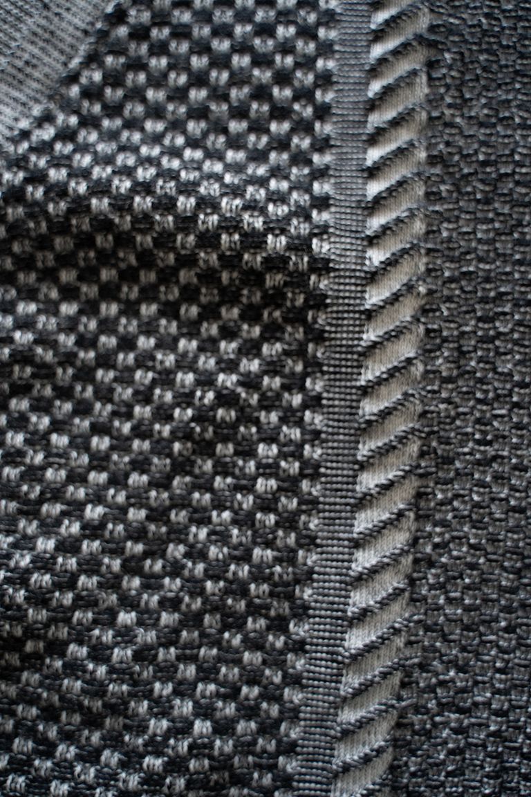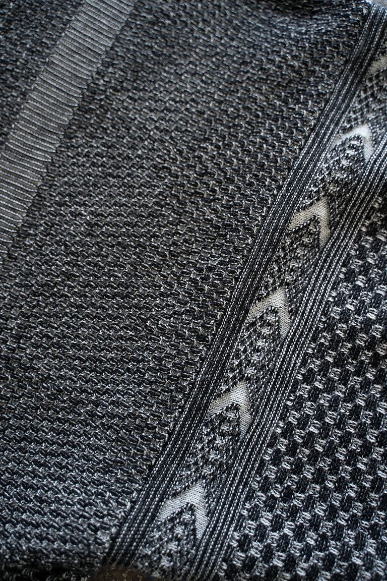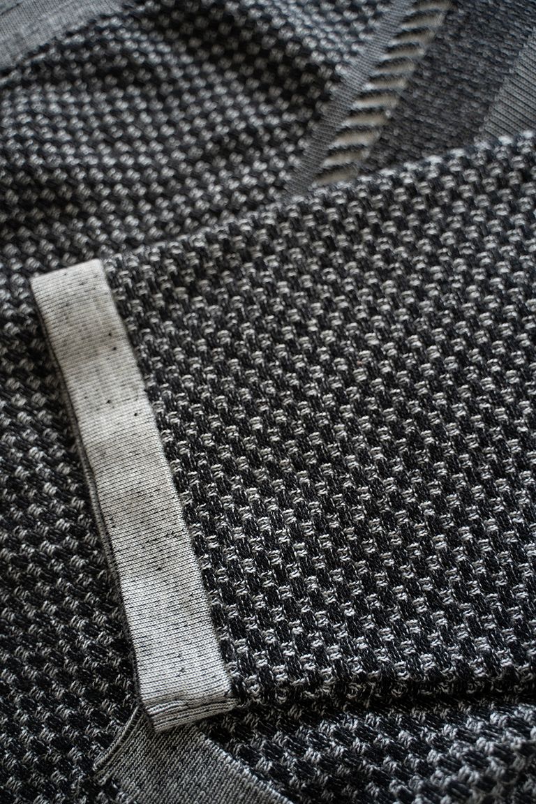 雪が積もり始めた白山連峰、白と黒の山々の陰影がくっきりと浮かび上が糸にはニュージーランド産のファインウールとオーストラリアメリノをブレンドした防縮糸を使用しております。