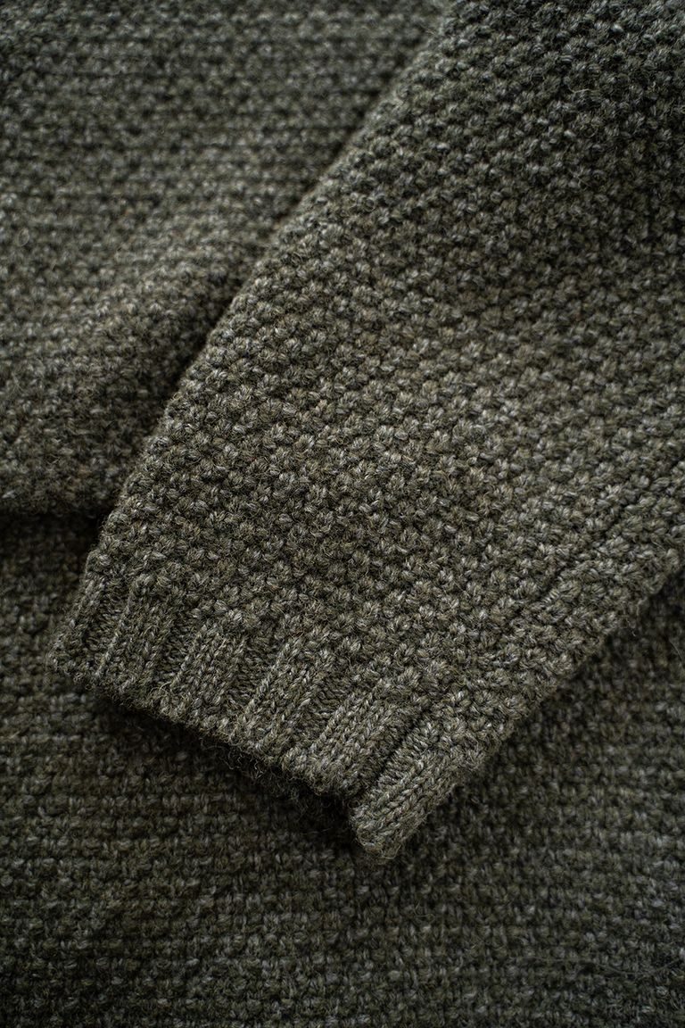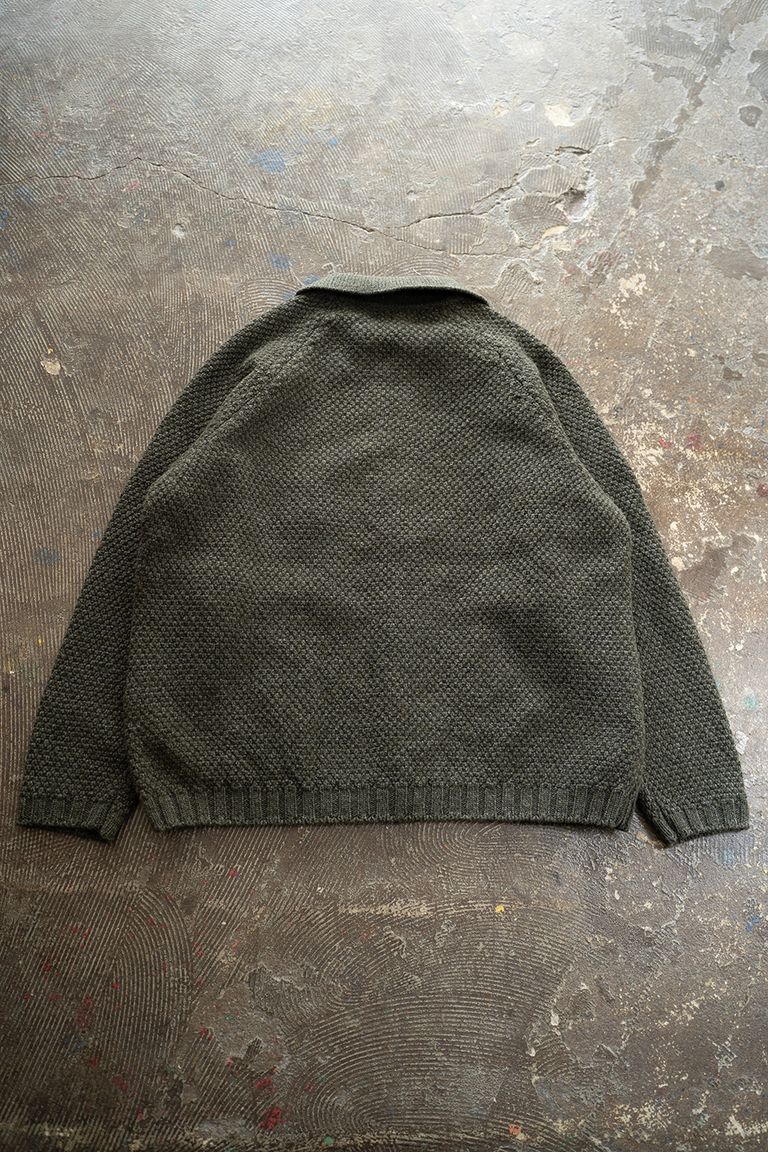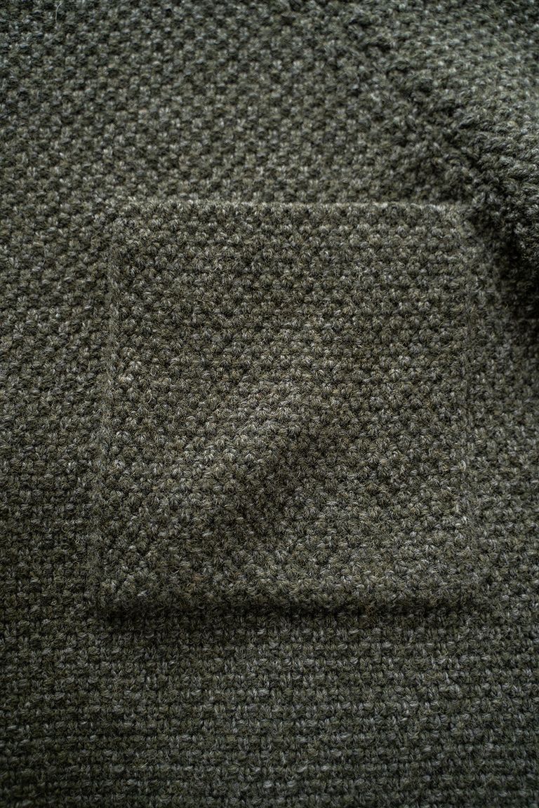 ニットカーディガンの様でありながら、フロントはジップ仕様、後述の肉厚な生地感やシームポケットの仕様、襟付きのディテールによりアウターらしいしっかりとした雰囲気となっております。