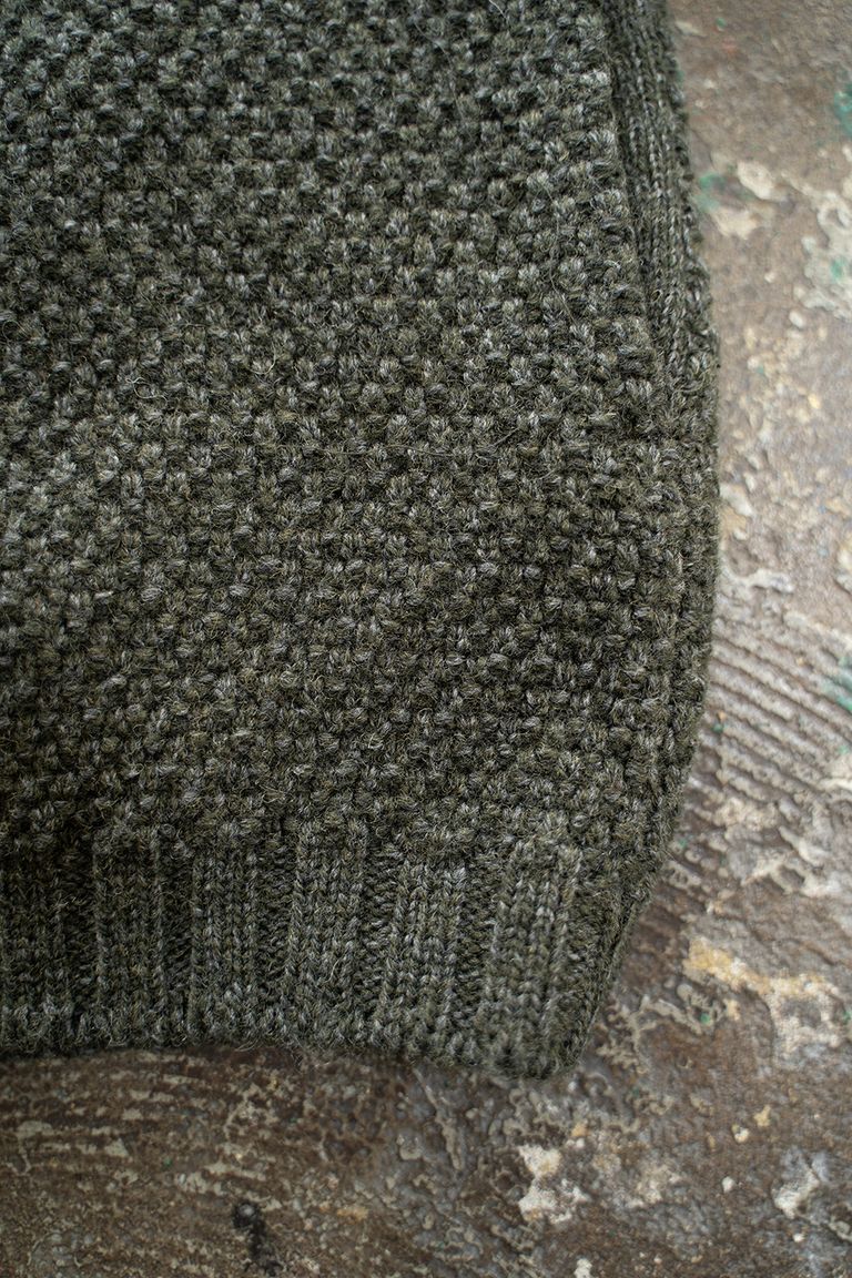 適度に厚みがありぽこぽことした凹凸によって編み組織が目立つ、ニットらしさを存分に感じられる存在感のある生地です。