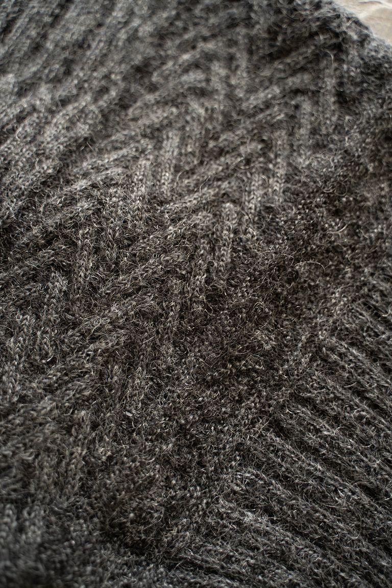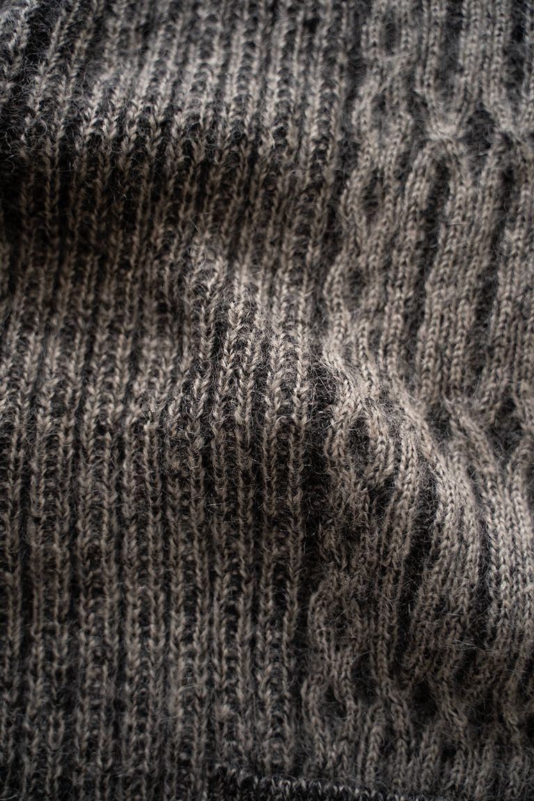 裏の糸が表の編み目の間からうっすらと見え、奥行きのある表情に仕上がっているのが特徴です。