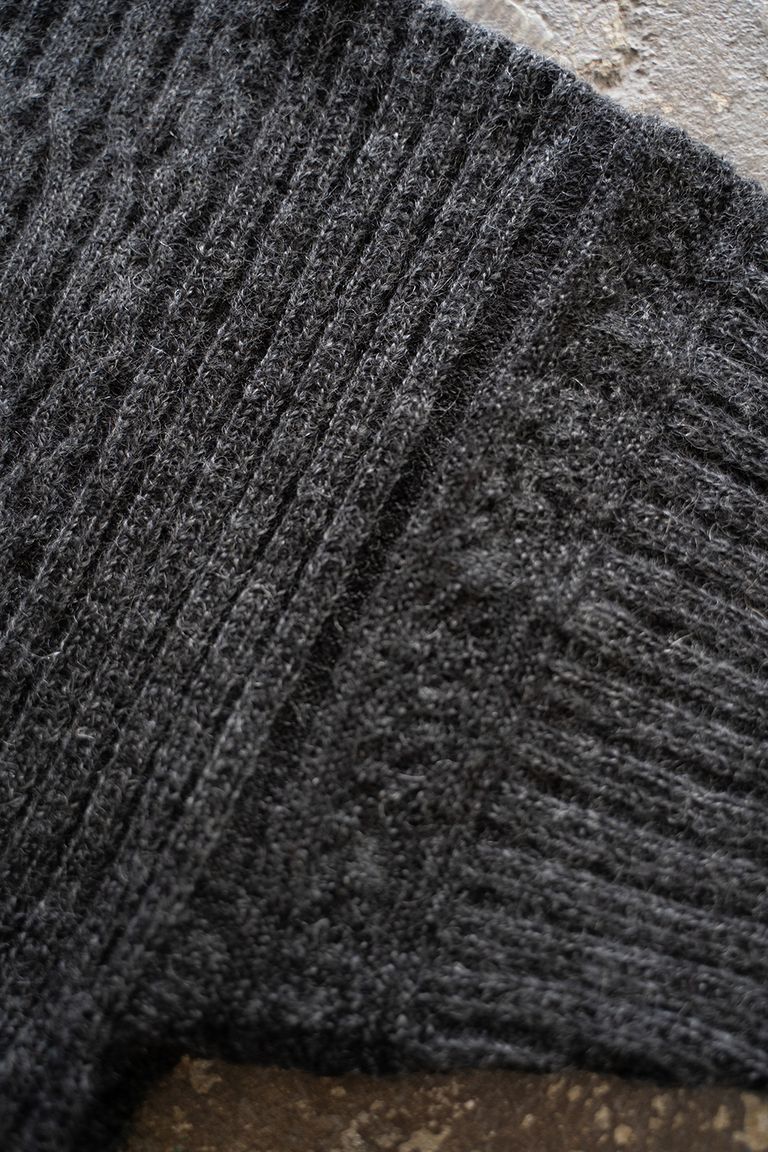 裏の糸が表の編み目の間からうっすらと見え、奥行きのある表情に仕上がっているのが特徴です。