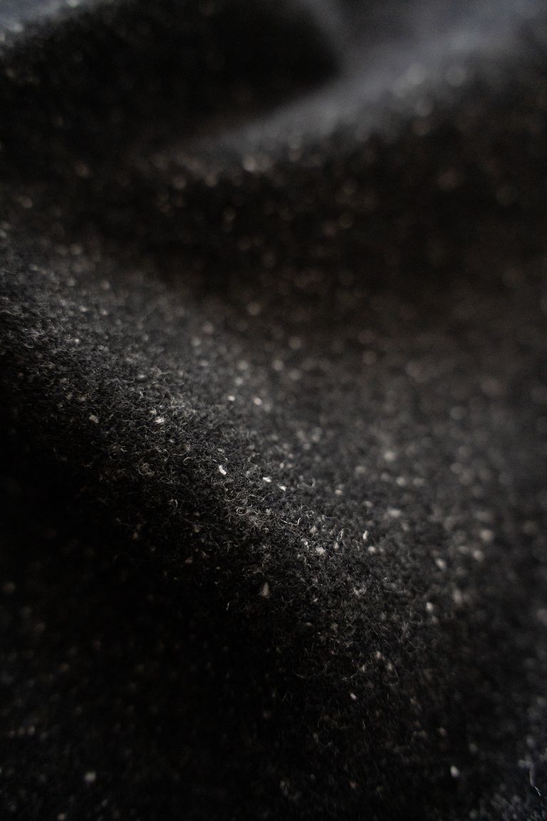 こちらの作品では、ウールをメインに、化繊糸とシルク糸と5者混のツイード生地を使用しております。
