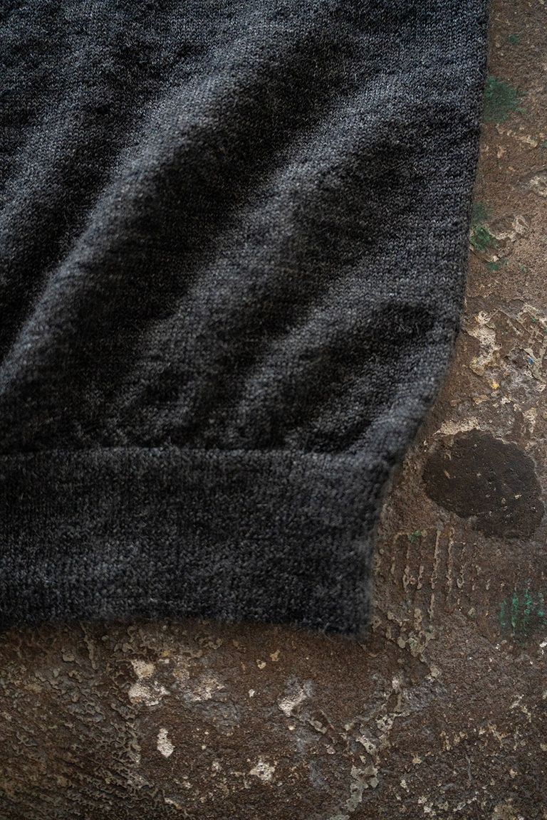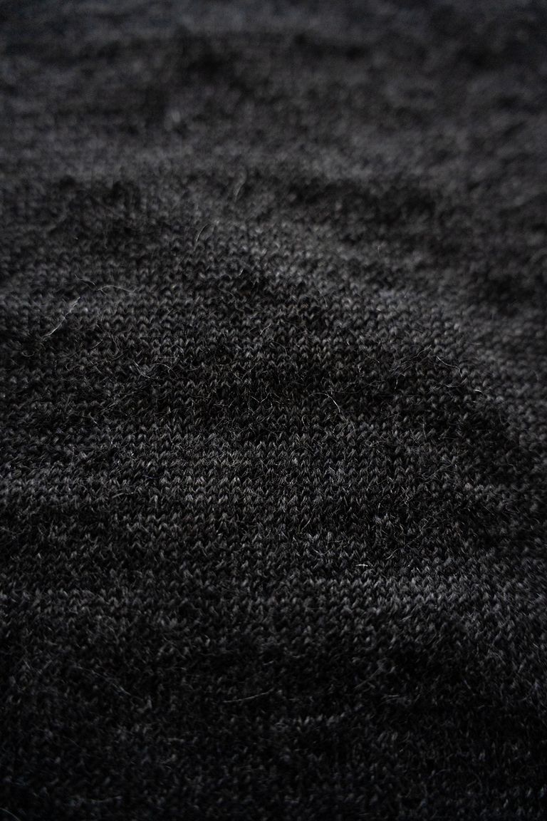 こちらの作品では、エクストラキッドモヘア(※)が表に、防縮加工を施したウールが内側に来る様に編み上げた生地を使用しております。