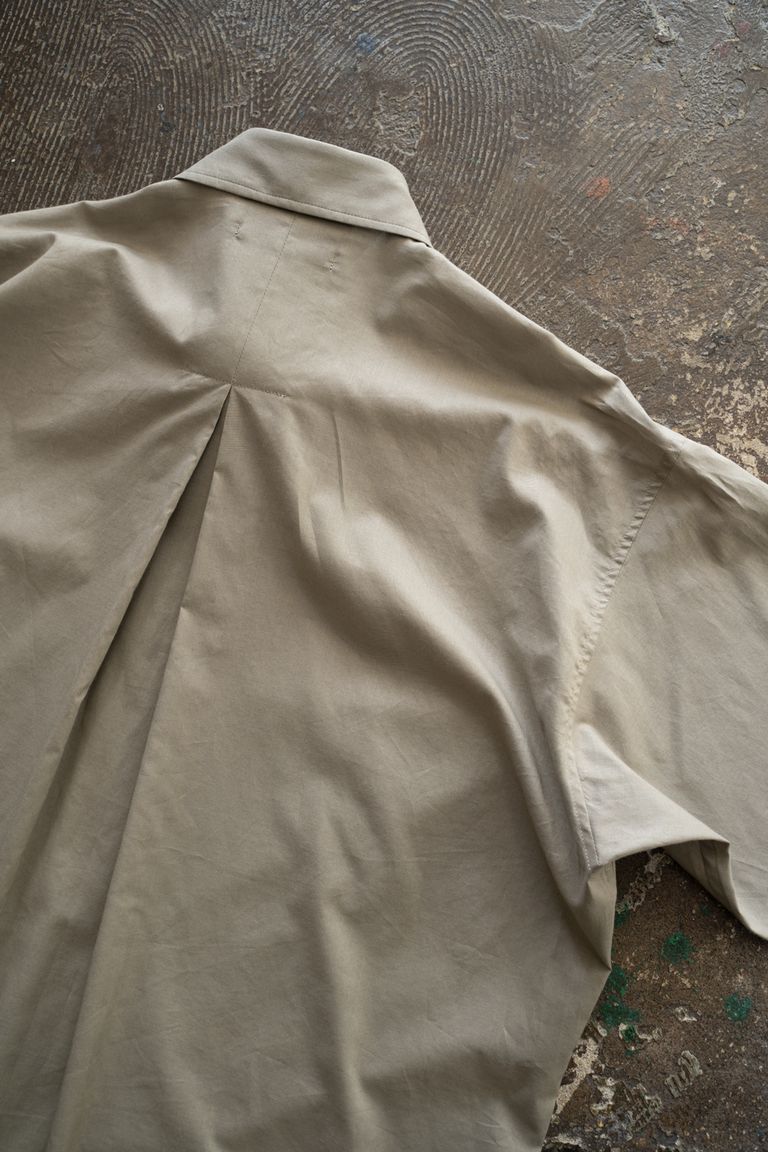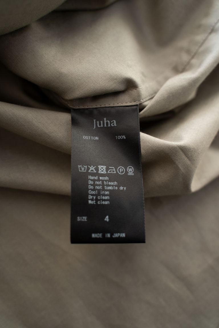 JUHAのシャツのアイコンとも言える背面に施されたインボックスプリーツとこちらのシルエットにより、前述した生地のしなやかなドレープ感が活きるデザインに仕上げております。