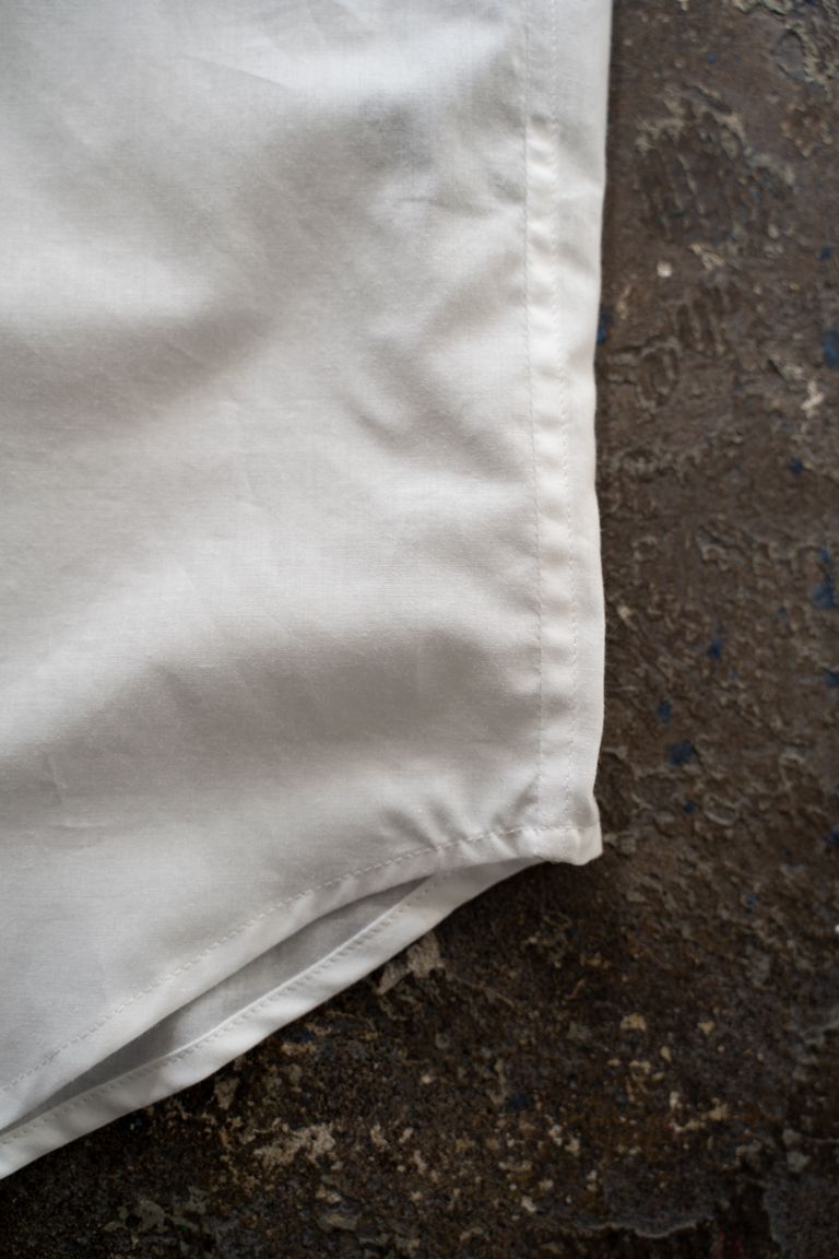 こちらの作品では、60番手の綿糸を高密度に織り上げたローン生地を使用しております。