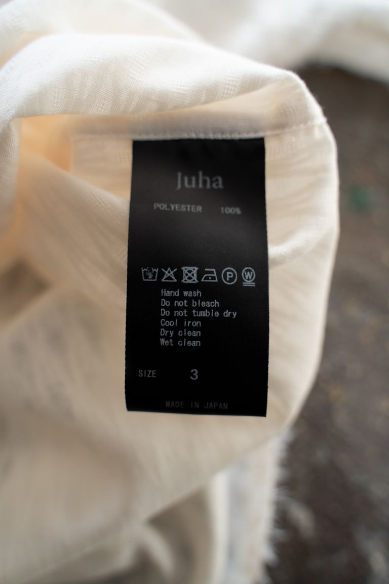 背面のヨークを排除し深いインボックスプリーツを施したJUHAらしい印象的なディティールです。