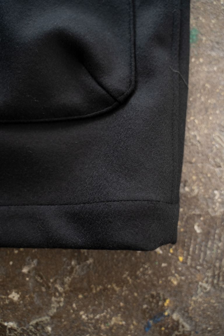 こちらの作品では、Super110'sのウール糸を用いて織り上げた贅沢なメルトン生地を使用しております。