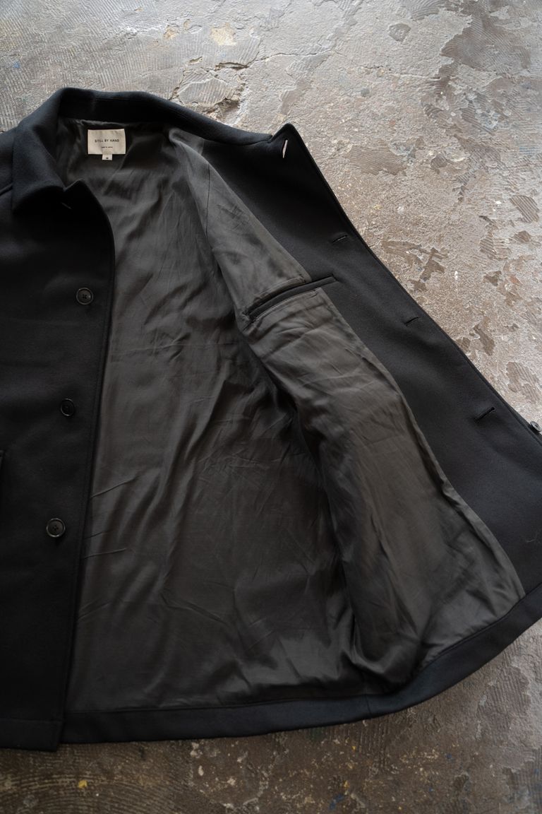 【25AW】Super110'Sメルトンステンカラーハーフコート(BLACK)
