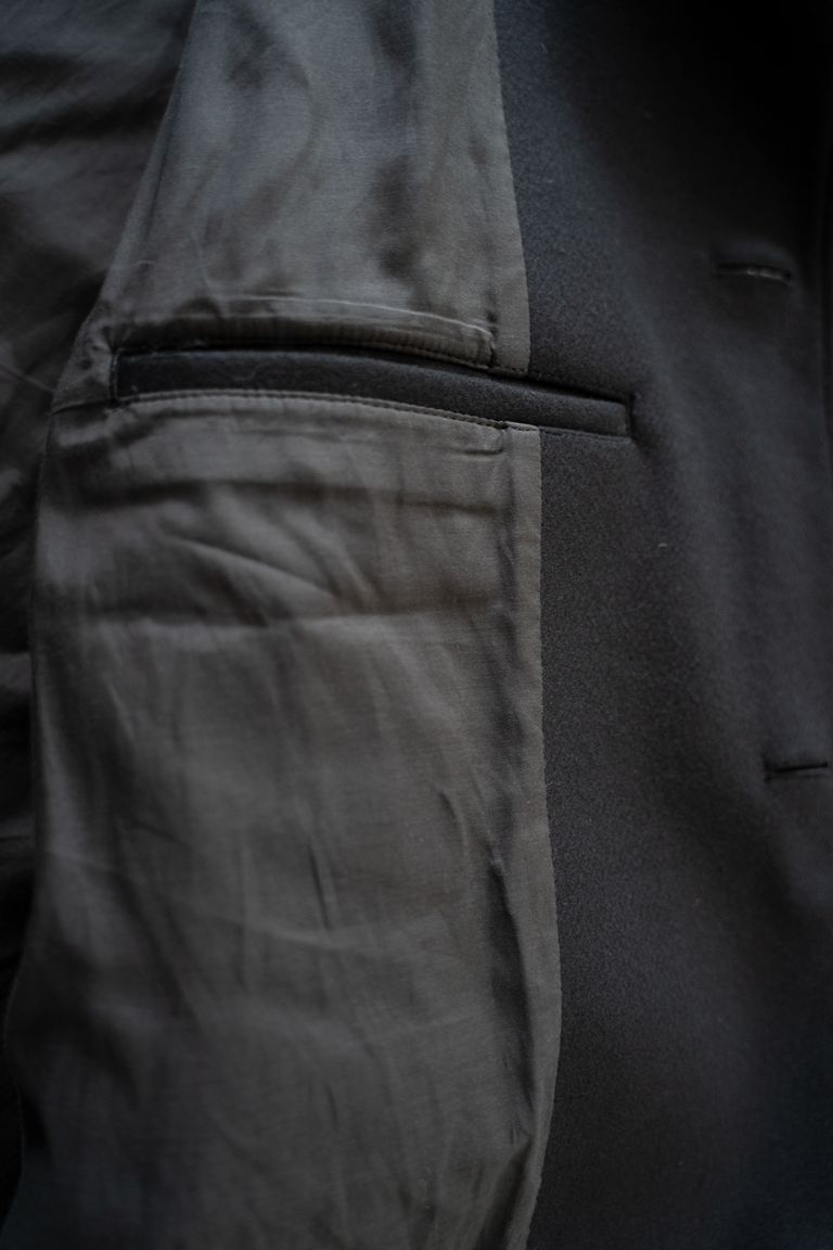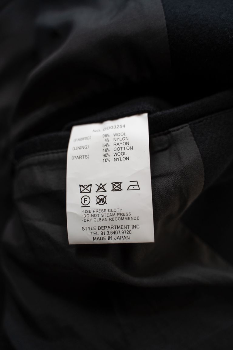 表地:ウール96% ナイロン4% 身頃裏:レーヨン54% 綿46% 台襟裏:ウール100%