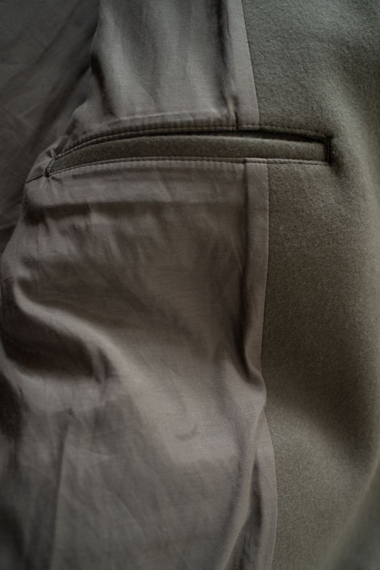 こちらの作品では、Super110'sのウール糸を用いて織り上げた贅沢なメルトン生地を使用しております。