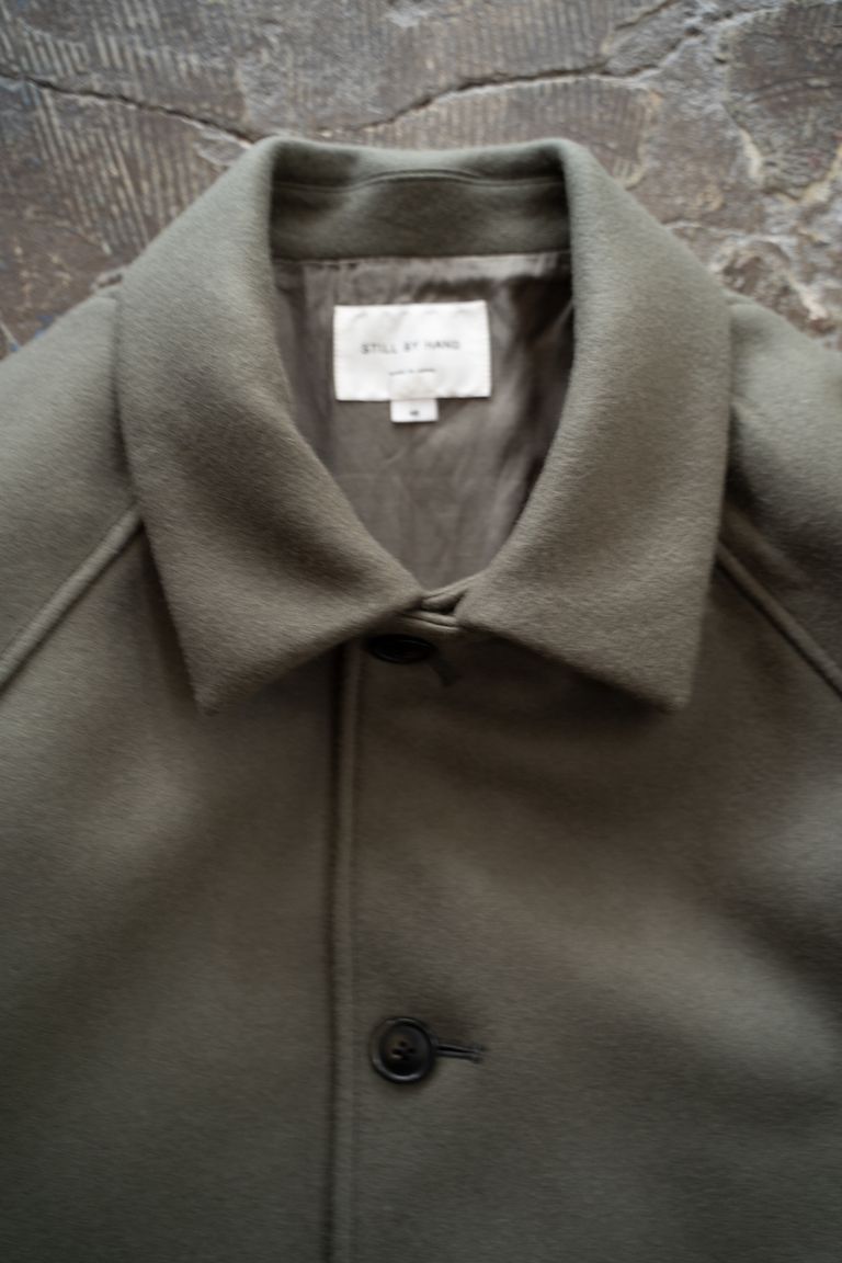 ステンカラーコートをベースとしながらも、身幅は広く、着丈は長過ぎないバランスに設定したゆとりのあるシルエット。フロントは比翼にしないことで気軽に着用できる力を抜いた雰囲気に仕上げております。