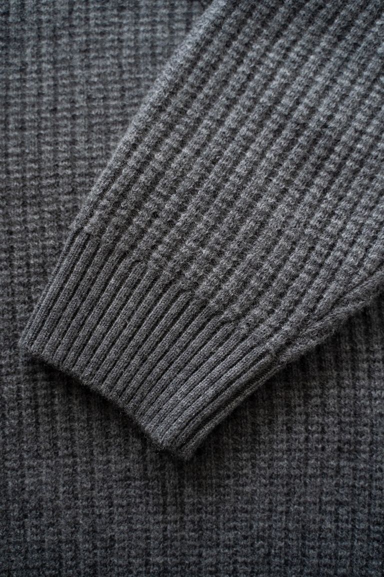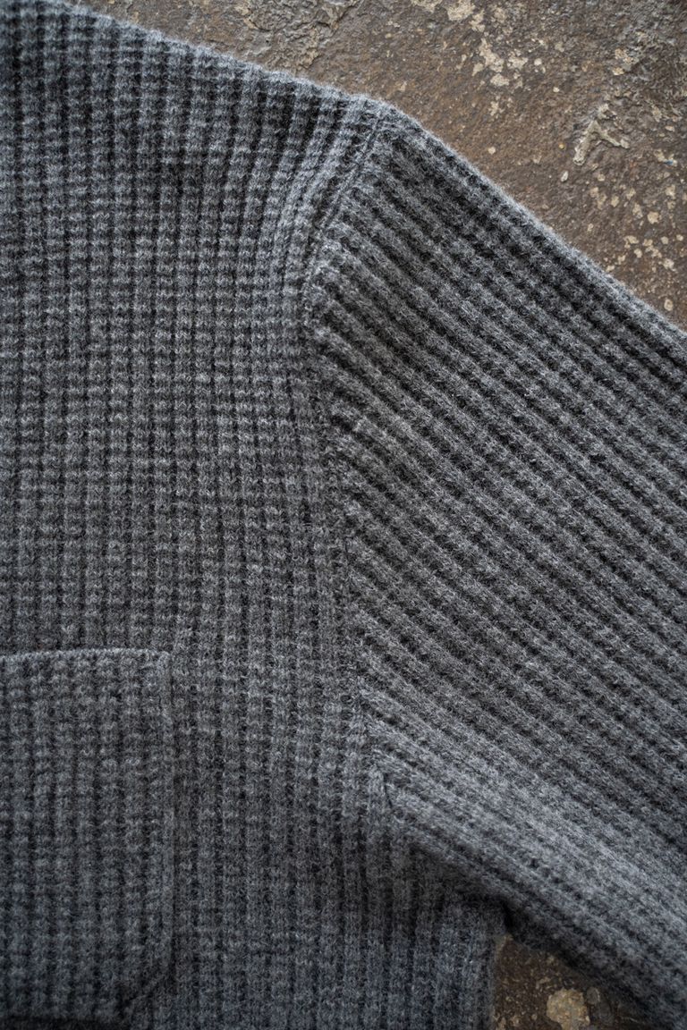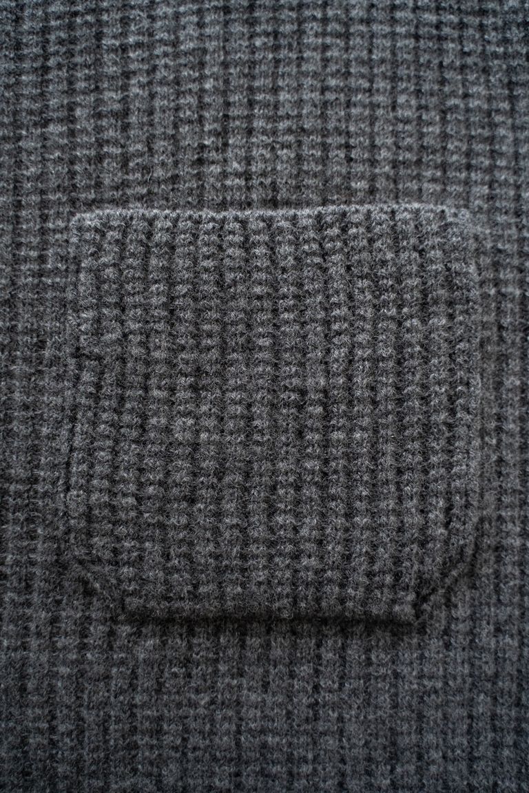 ニットにはあまり見られない胸ポケットをさりげないアクセントにし、前述した生地の良さを活かしたミニマルなデザインに仕上げております。