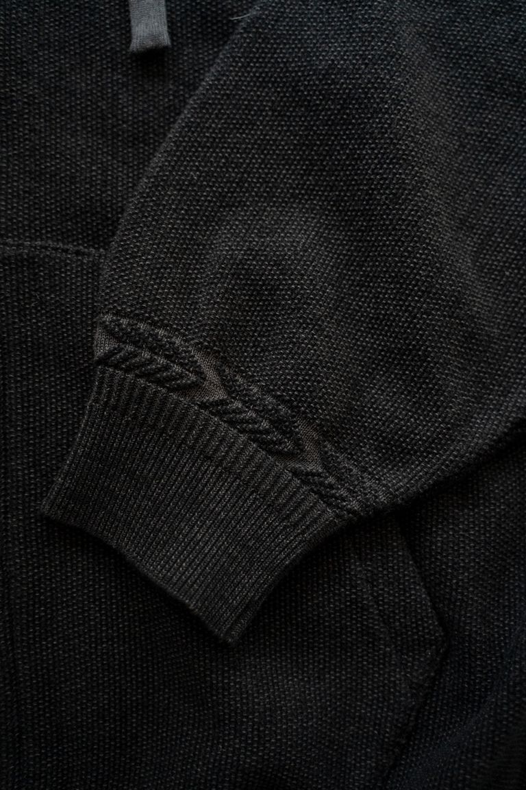 色合いの異なる裏の糸を効果的に表に出し、陰影を感じる様な立体感のある編み地に仕上がっております。