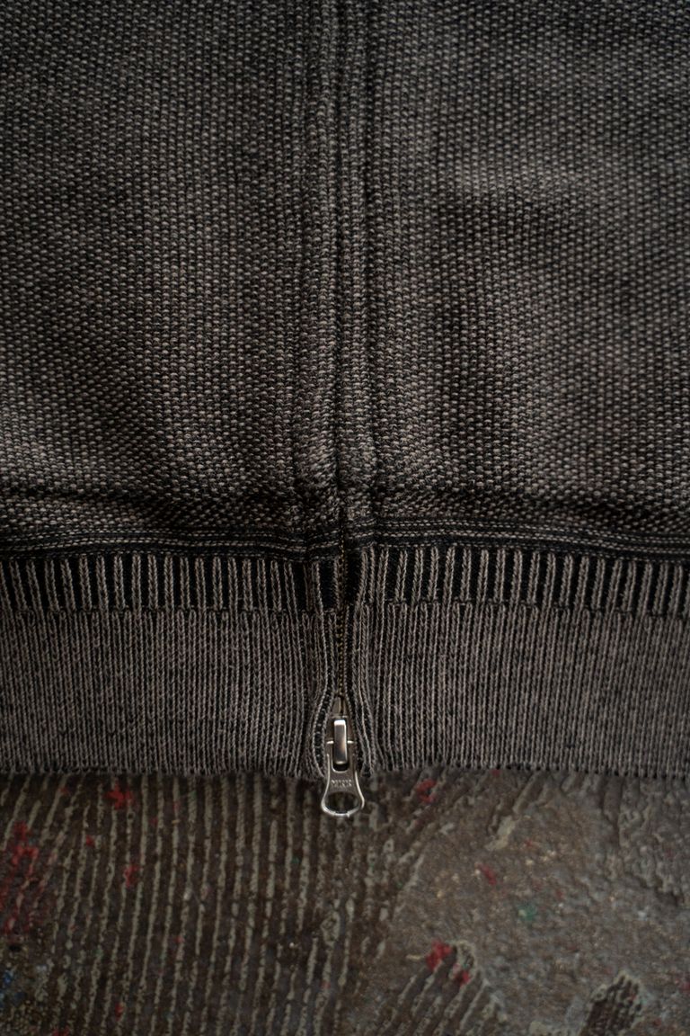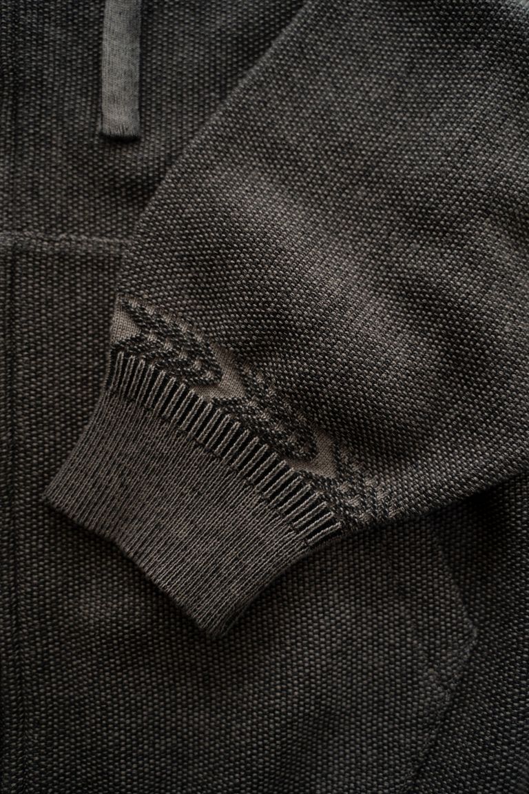色合いの異なる裏の糸を効果的に表に出し、陰影を感じる様な立体感のある編み地に仕上がっております。