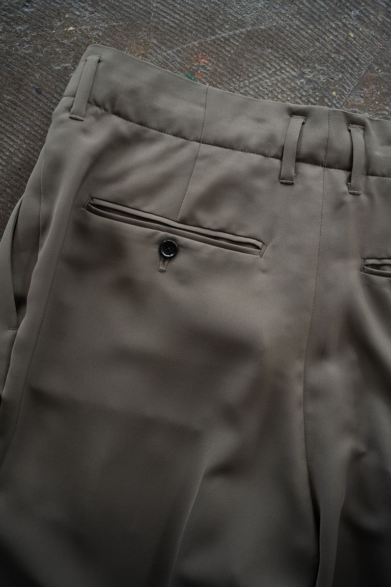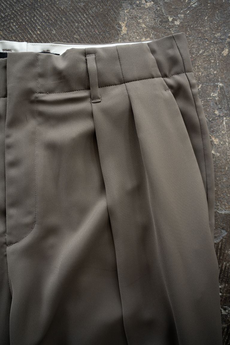 【26SS】PE Drape Double Tuck PT/ポリエステルドレープWタックパンツ(KHAKI)