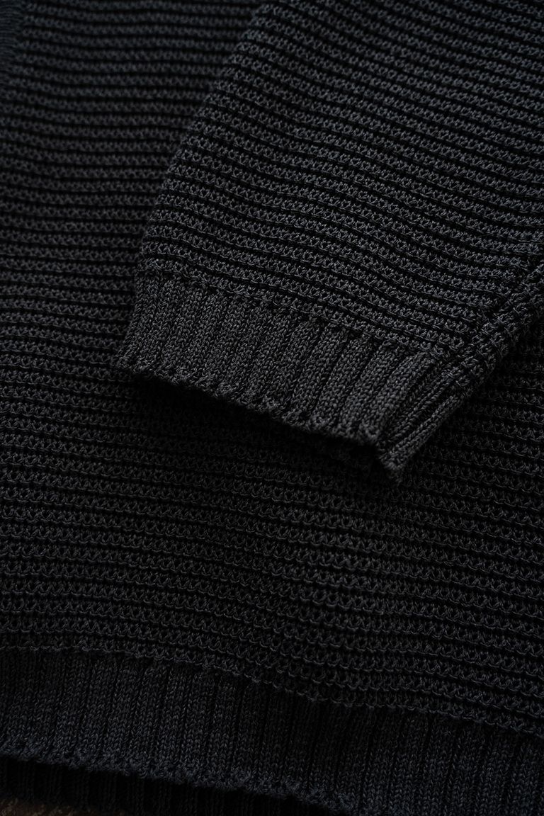 袖や裾のリブは控えめにし、編み地を活かしたミニマルなデザインに仕上げております。