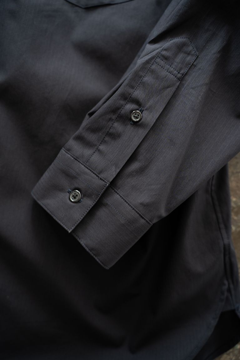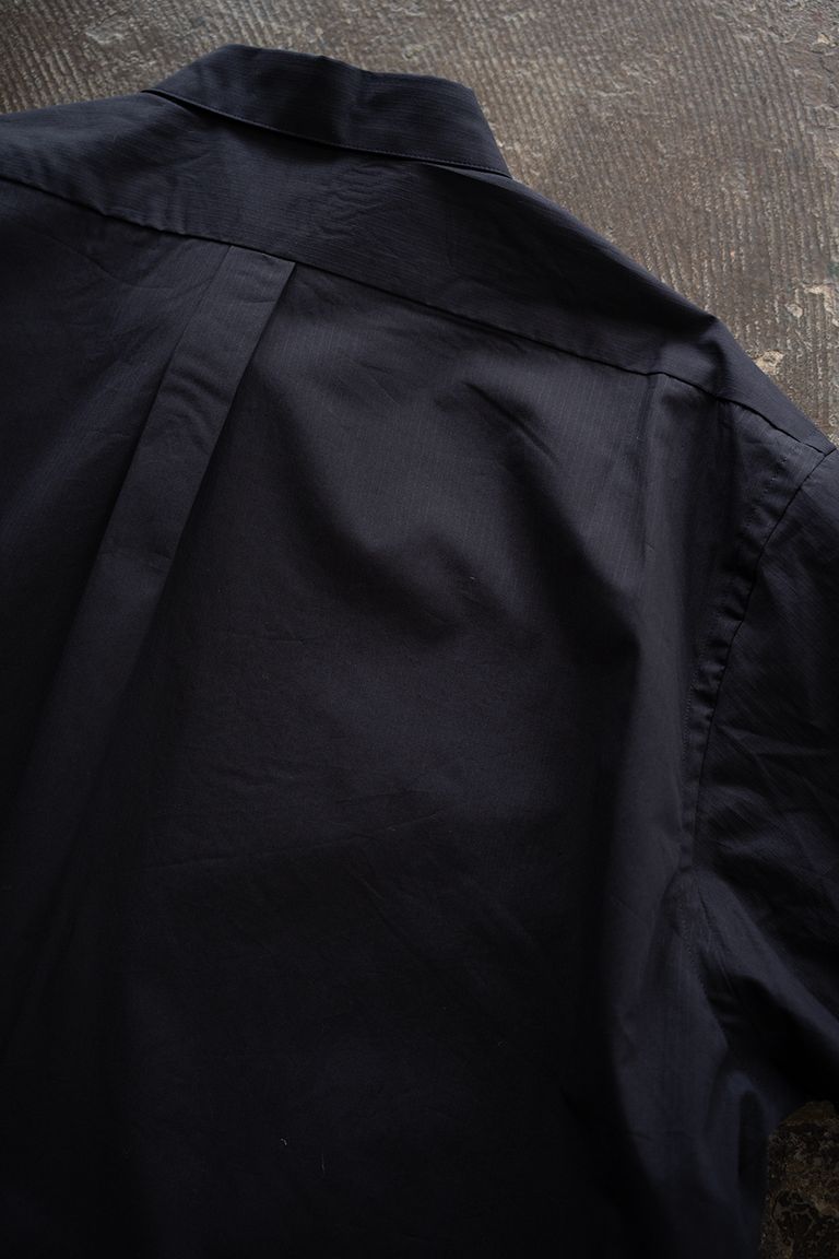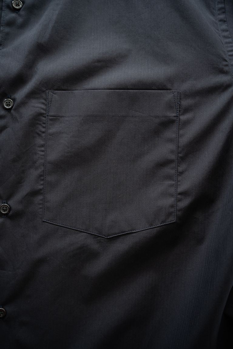 レギュラーカラー、左胸ポケットの普遍的なデザインをベースとしながら、ゆとりのあるシルエット、ややナロースプレッドの襟など、適度に個性を感じるバランスに仕上がっております。