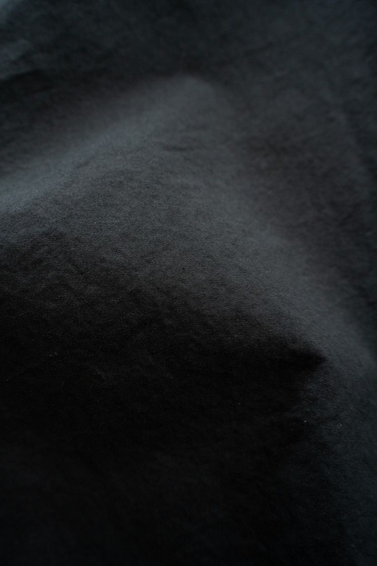 こちらの作品では細番手の綿糸で高密度に織り上げたツイル生地を使用しております。