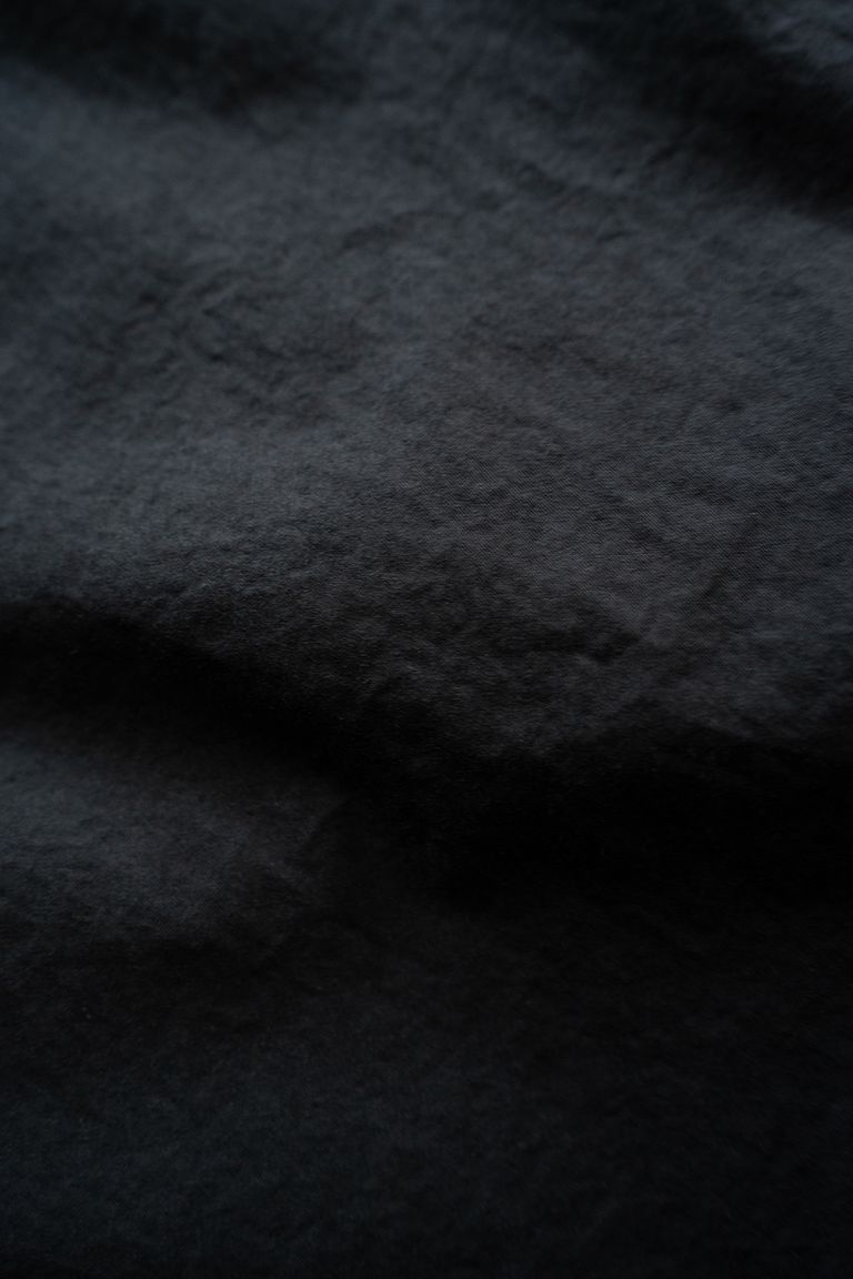 製品染めを施すことで、落ち着いた色合いになっており、生地表面には自然なシワやアタリが生まれた、表情のある仕上がりです。