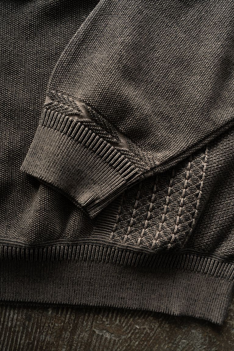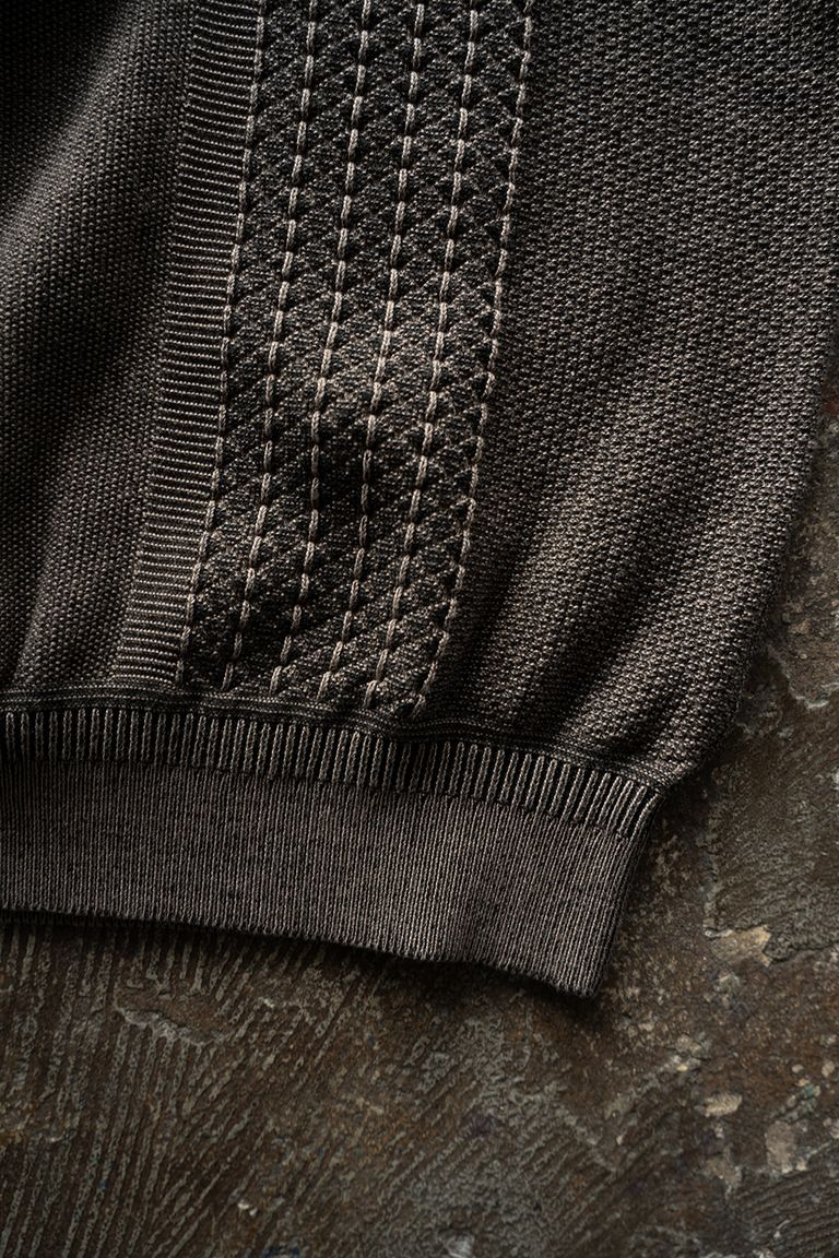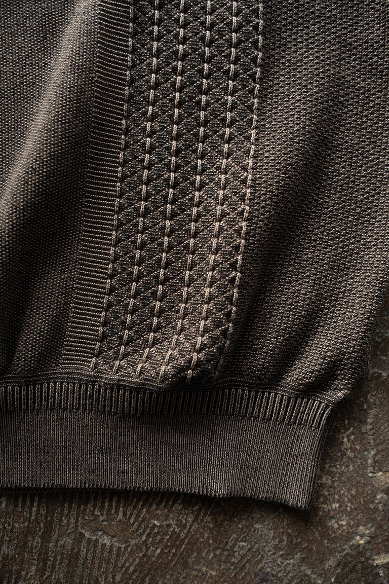 裏の糸が表の編み目の間からうっすらと見え、奥行きのある表情に仕上がっております。