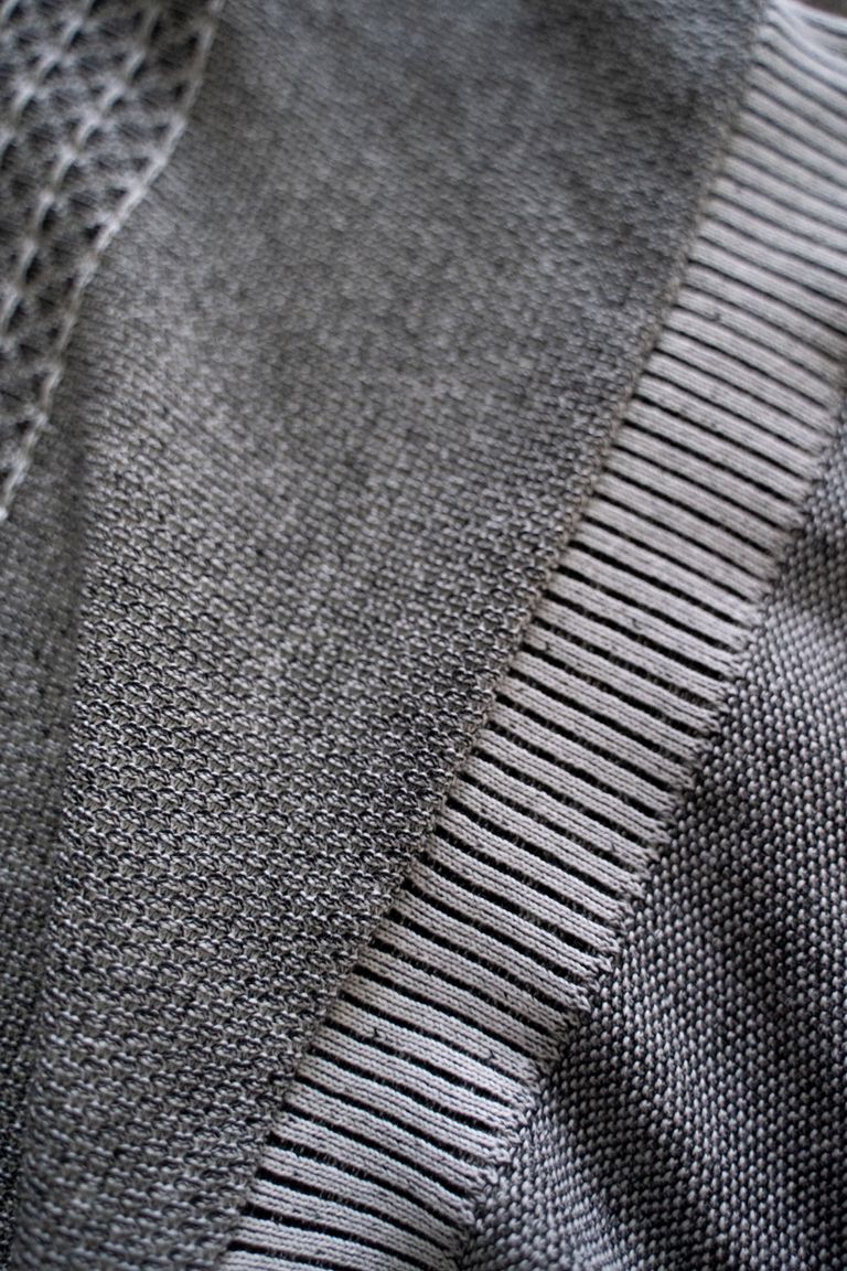裏の糸が表の編み目の間からうっすらと見え、奥行きのある表情に仕上がっております。