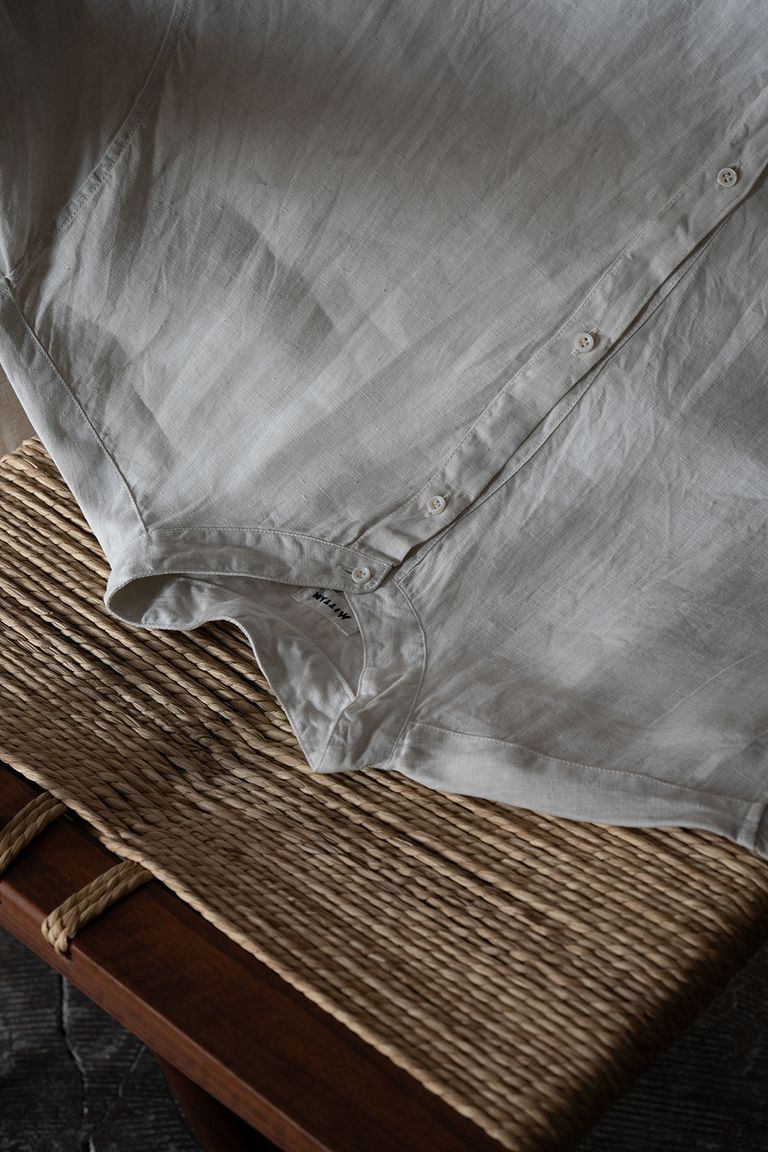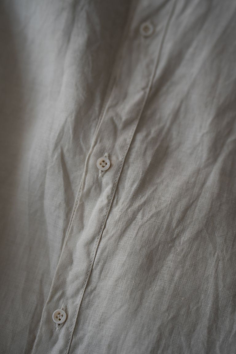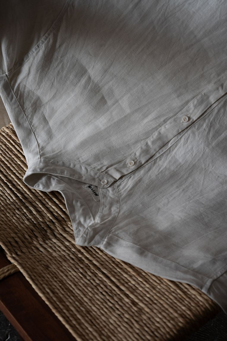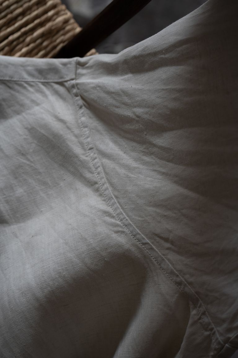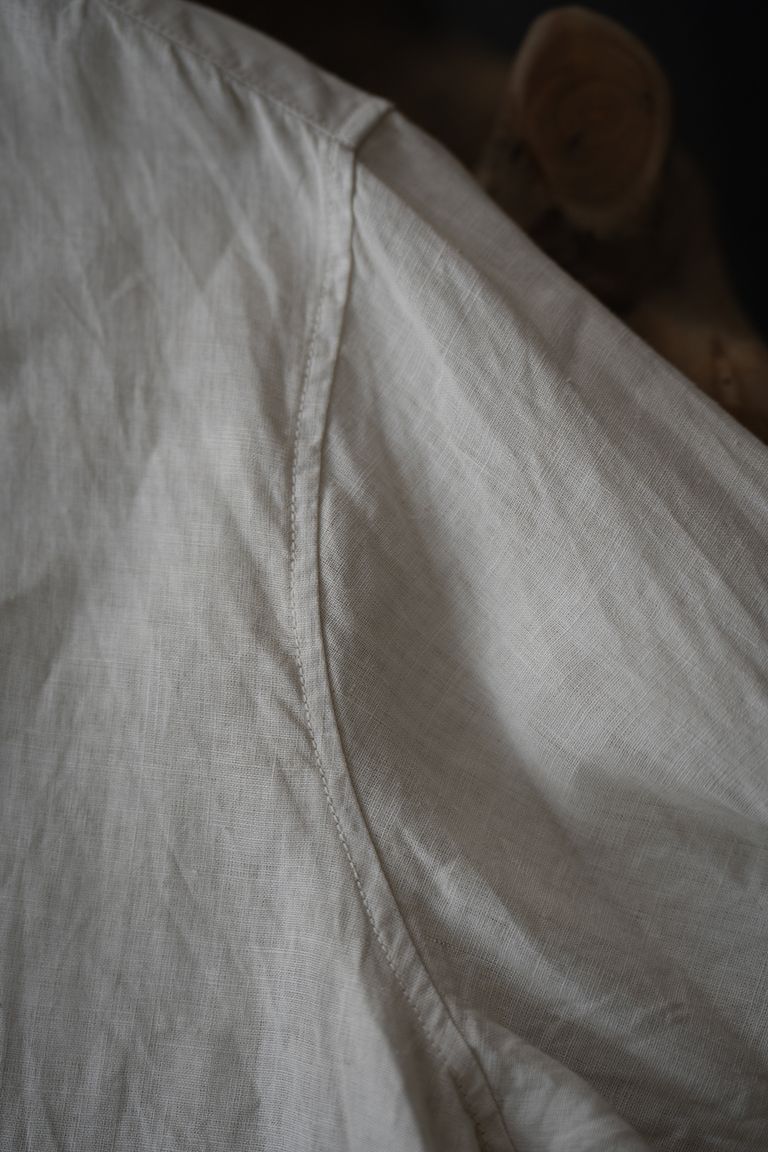 こちらの作品は、SH-91の「大麻シャツ」に全体的に少しゆとりを持たせた形です。リラックスしたバランスをお愉しみくださいませ。