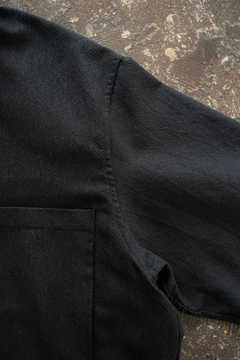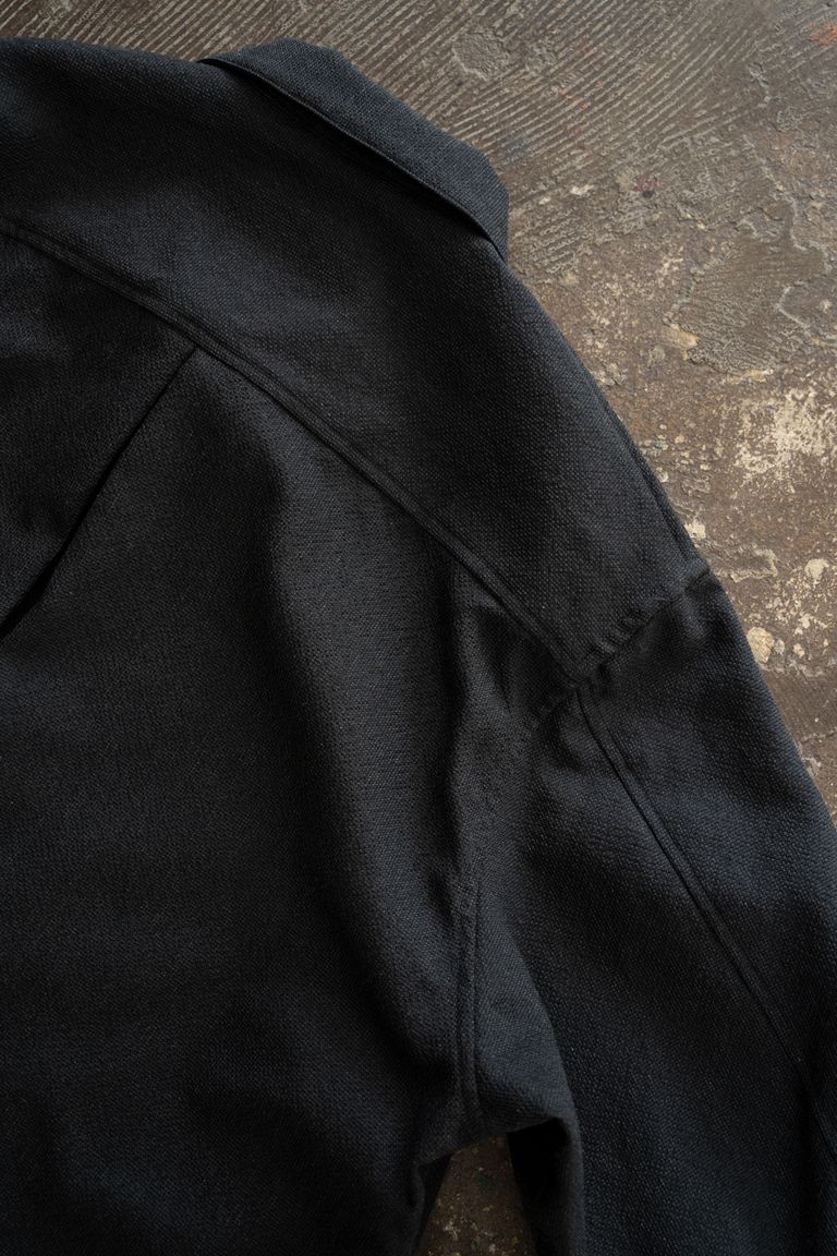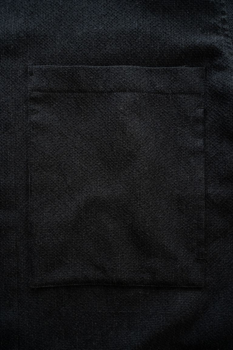 前述した適度な厚みのある生地を使用しながらも、裏地をつけないことで、シャツとしてもジャケットとしても着用できる汎用性の高い作品です。