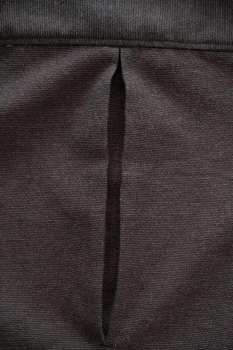 ポケットはサイドからもアクセスできる構造で、見た目のアクセントと実用性を兼ね備えています。