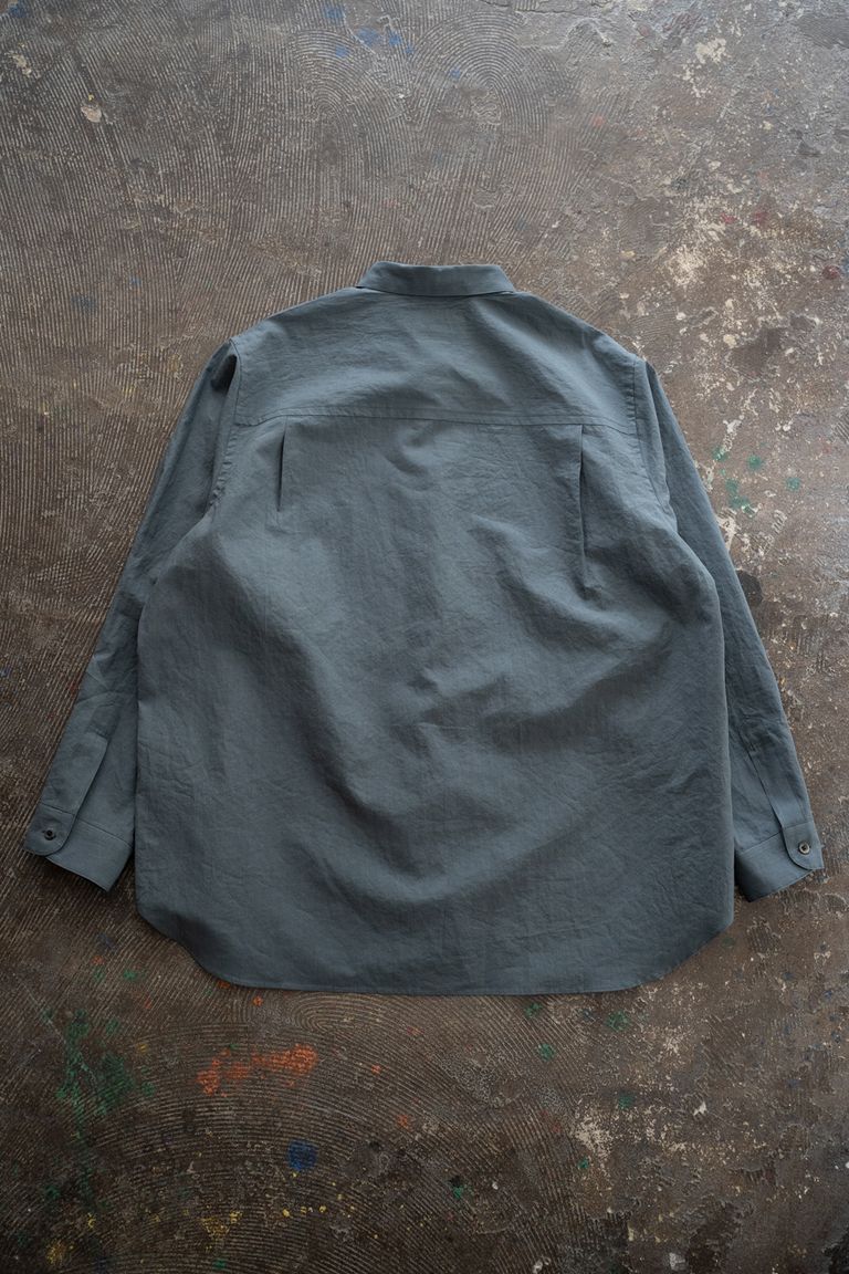 【26SS】極小襟コットン×リネンタイプライターシャツ(BLUE GREY)