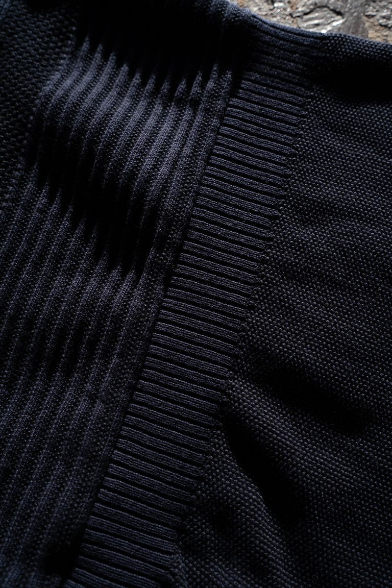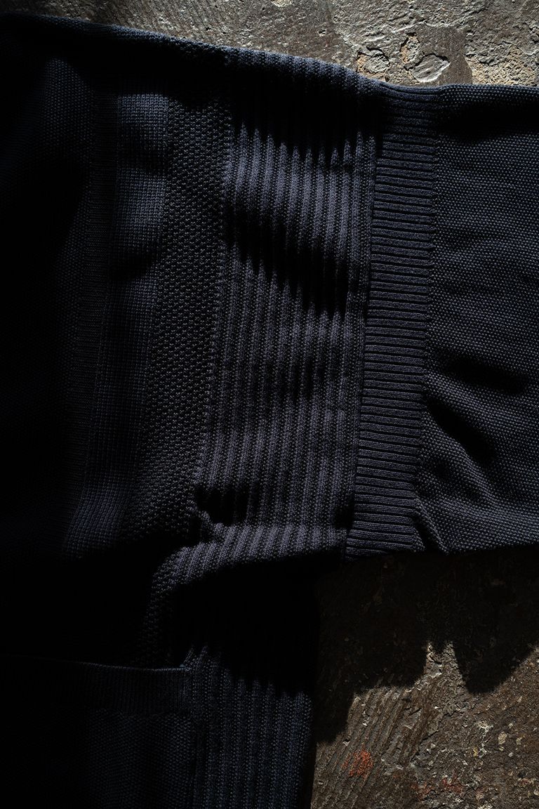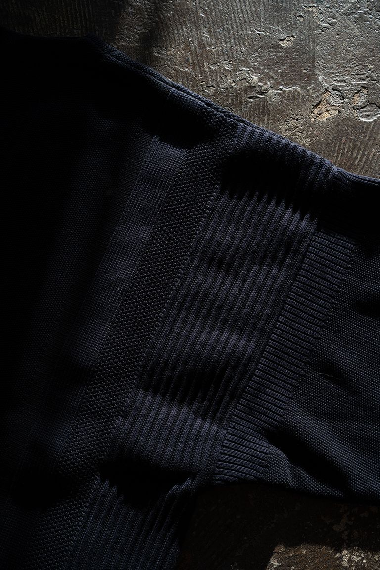 こちらの作品で使用している生地は、12ゲージの編み機に40番手双糸を3本取りして編み立てております。