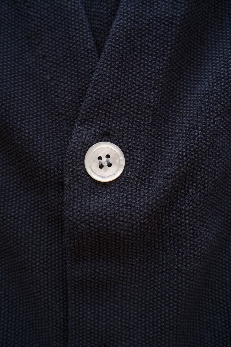 比較的薄手で、鹿の子編みの凹凸により肌への設置面積が少なく、暑い時期の着用が快適な素材です。