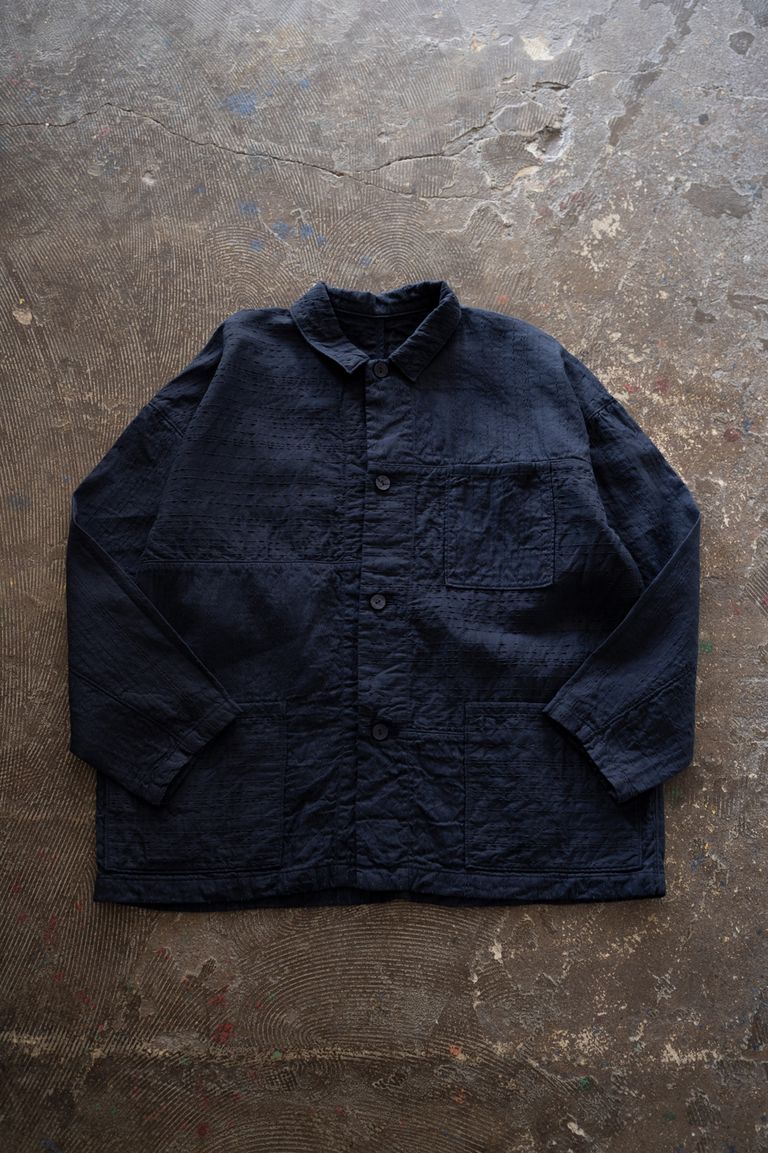 薄手刺し子織ジャケット(濃紺)