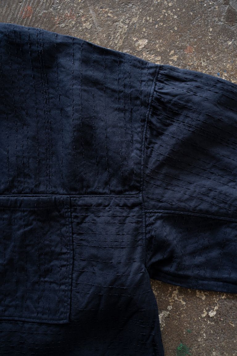 身頃では各パーツで向きを変え、実際に刺し子で縫い合わせたかのような様な印象に仕上げております。