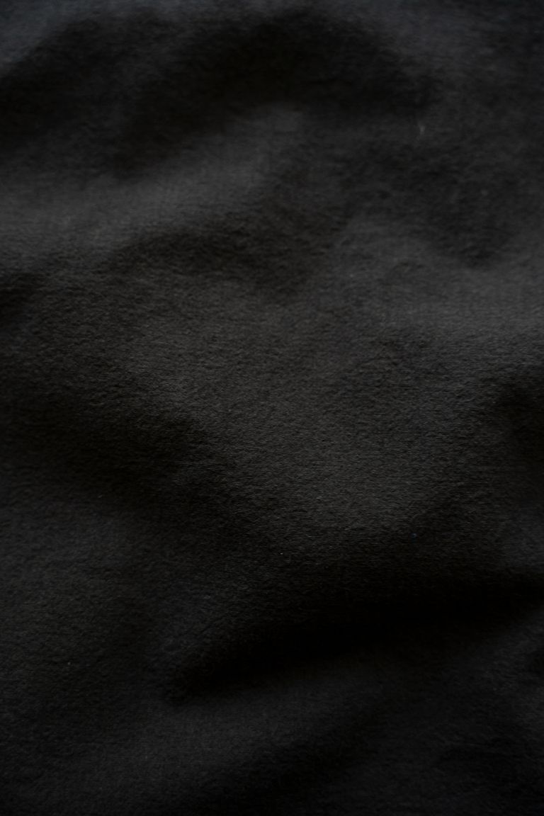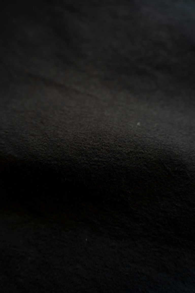 こちらの作品では、経糸と緯糸に細番手の強撚オーガニックコットン糸で極めて高密度に織り上げたブロード生地を使用しております。