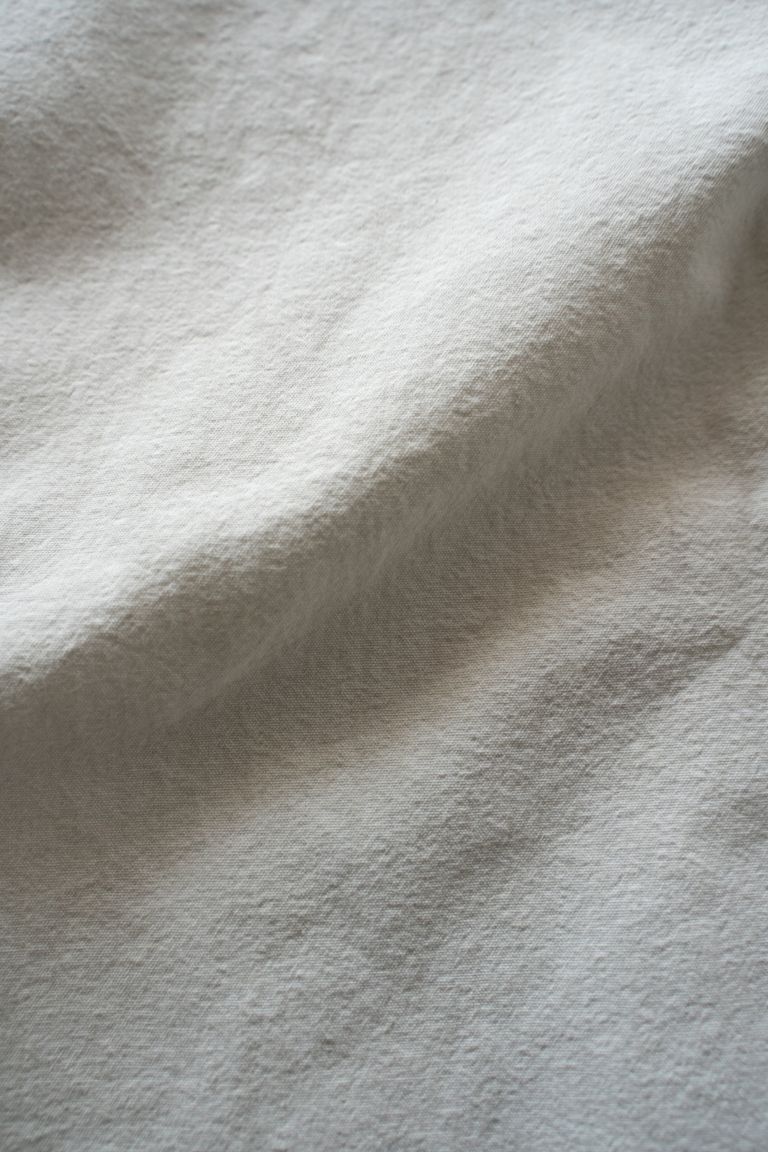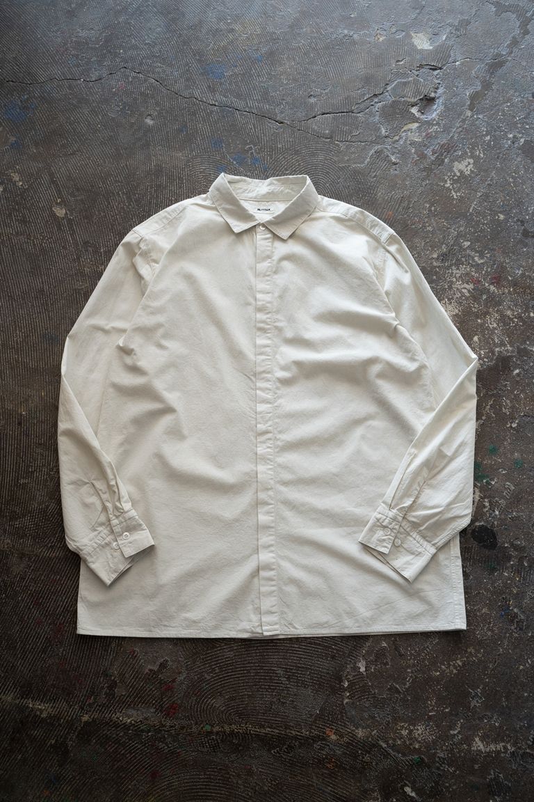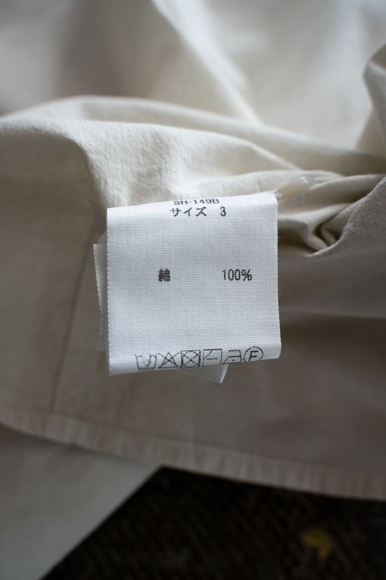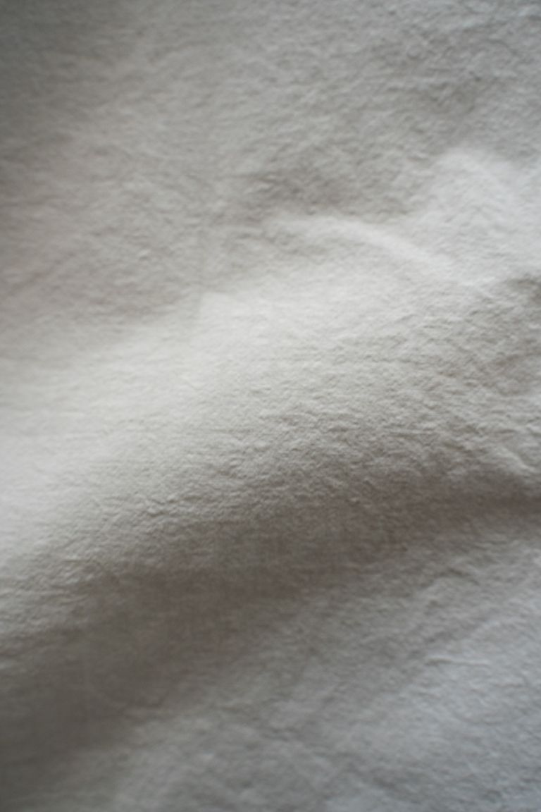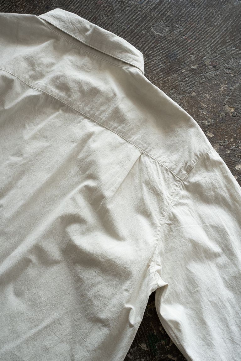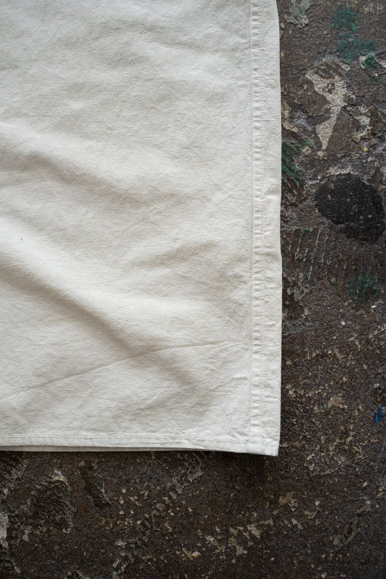こちらの作品では、経糸と緯糸に細番手の強撚オーガニックコットン糸で極めて高密度に織り上げたブロード生地を使用しております。