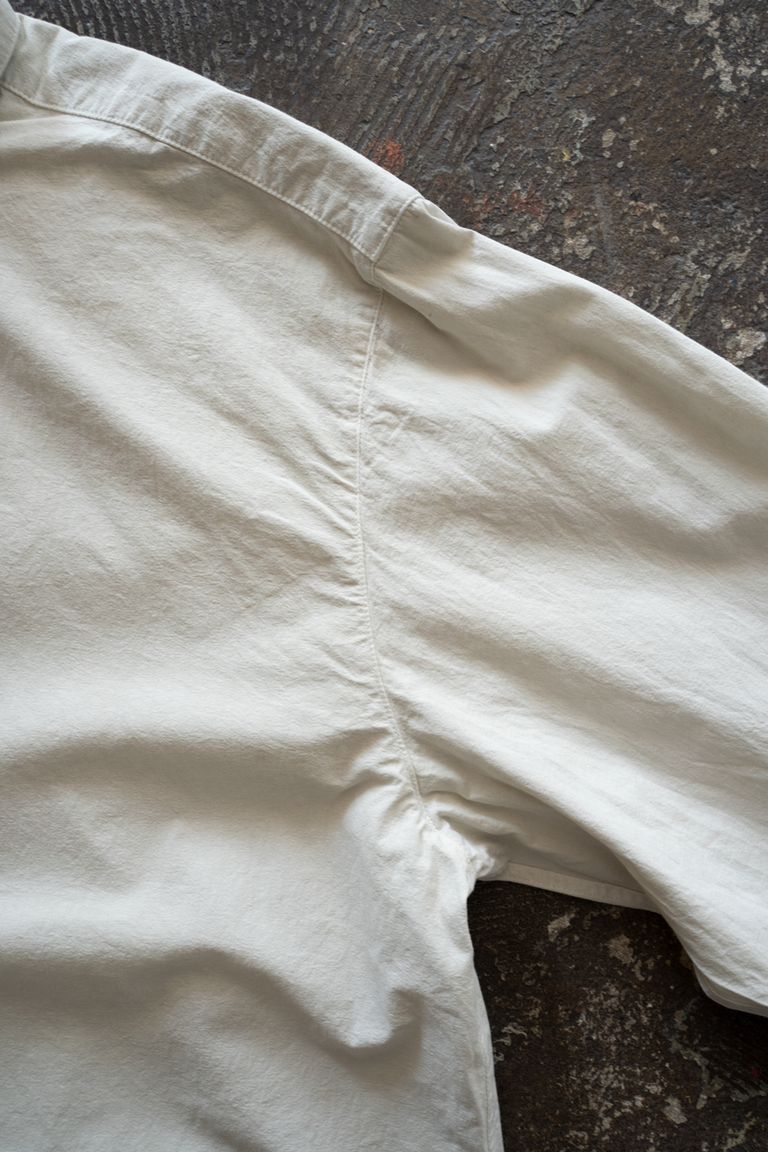 ※※いってこい始末……袖口の開きをパイピングを往復させる仕様。ドレスシャツに見られる剣ボロ仕様などと比べて、カジュアルで力を抜いた印象です。