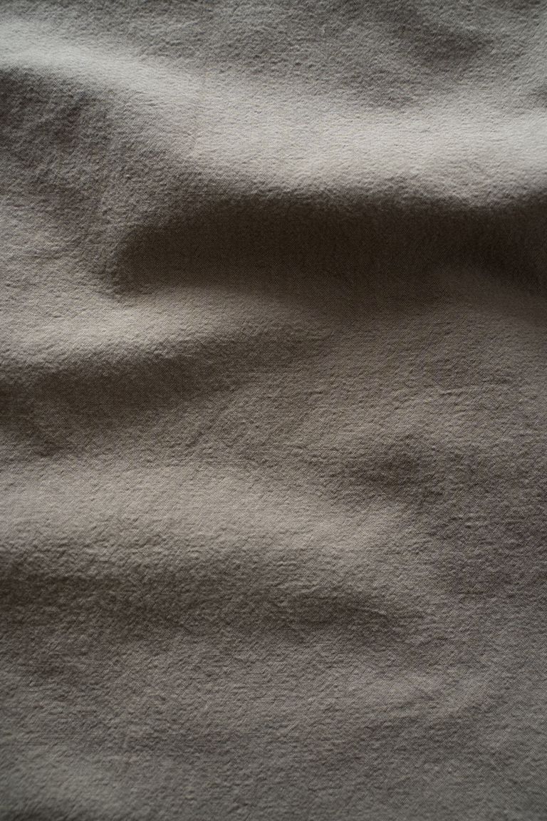 こちらの作品では、経糸と緯糸に細番手の強撚オーガニックコットン糸で極めて高密度に織り上げたブロード生地を使用しております。