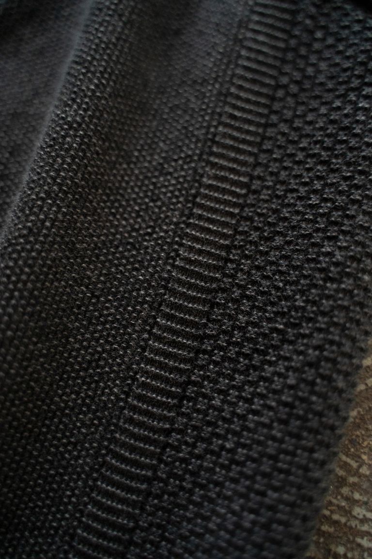 裏の糸が表の編み目の間からうっすらと見え、奥行きのある表情に仕上がっているのが特徴です。
