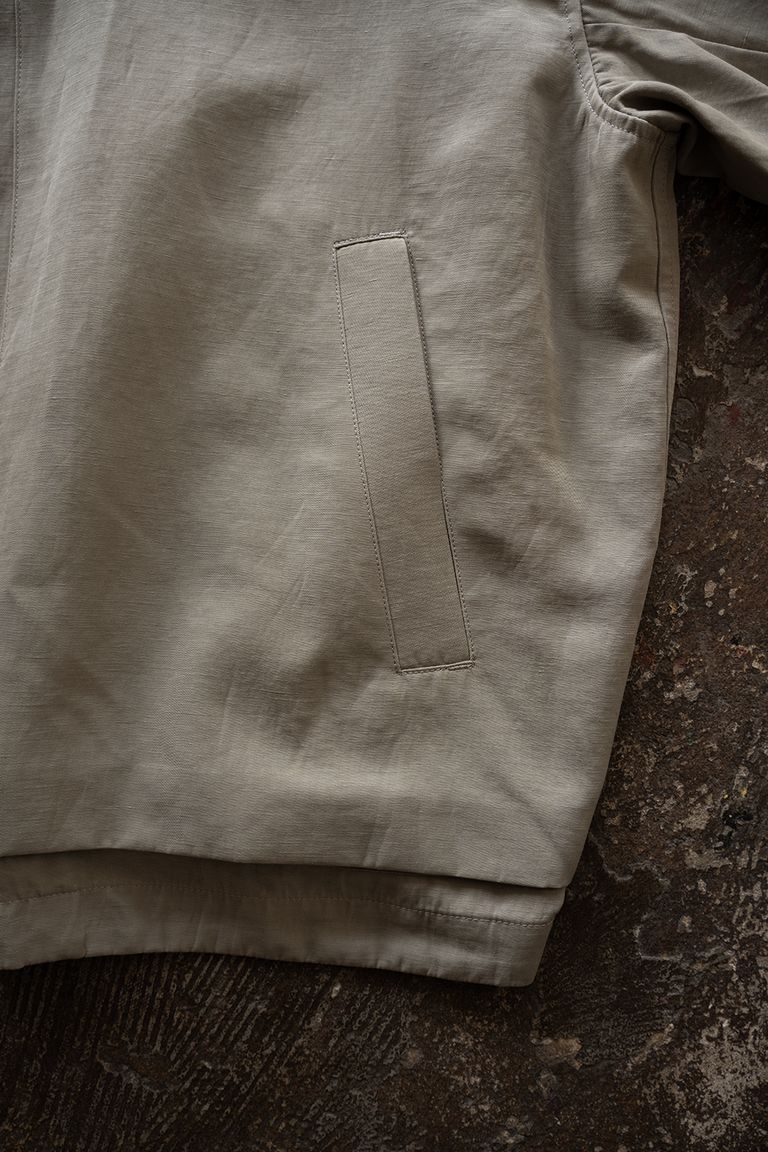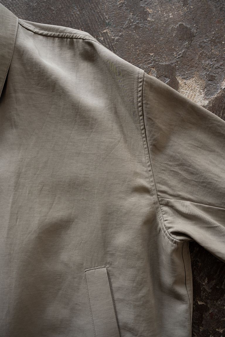 やや粗野な印象の見た目ではありますが、軽やかで清涼感があり、暖かい時期でも快適にご着用いただけます。