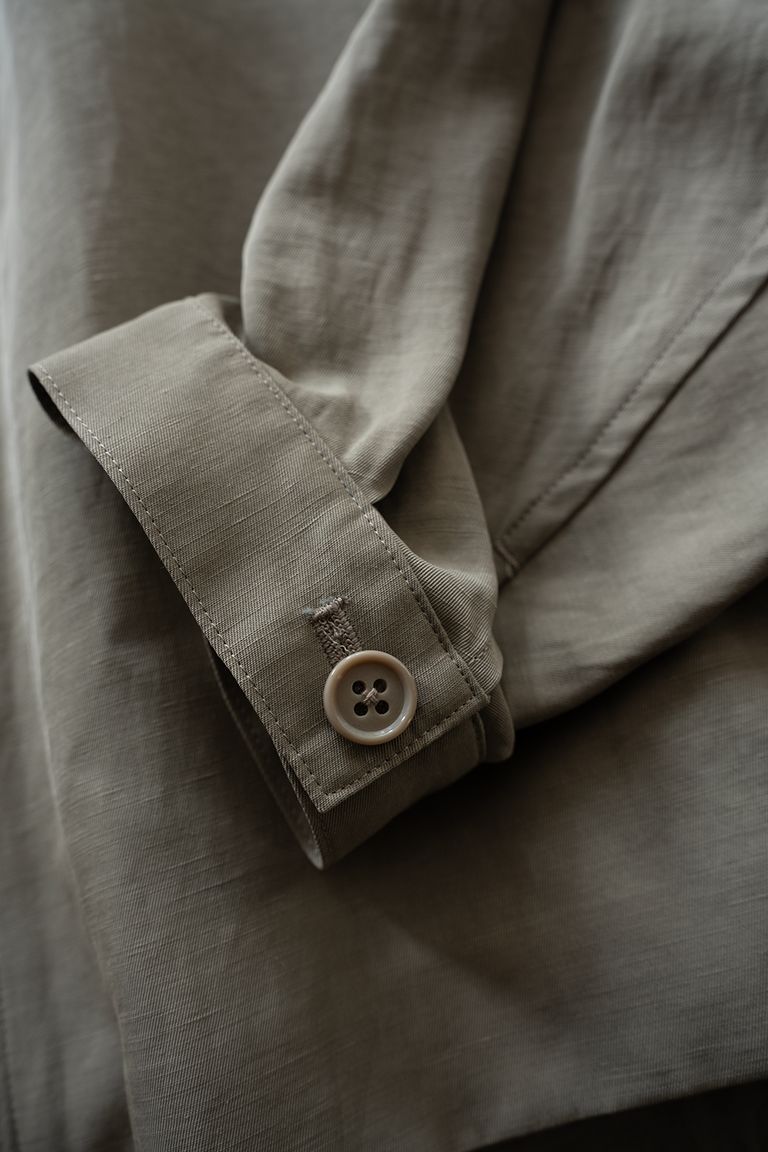 リヨセル由来の滑らかさと落ち感を備えつつ、リネン特有のスラブ感によりナチュラルな風合いも感じられる生地です。