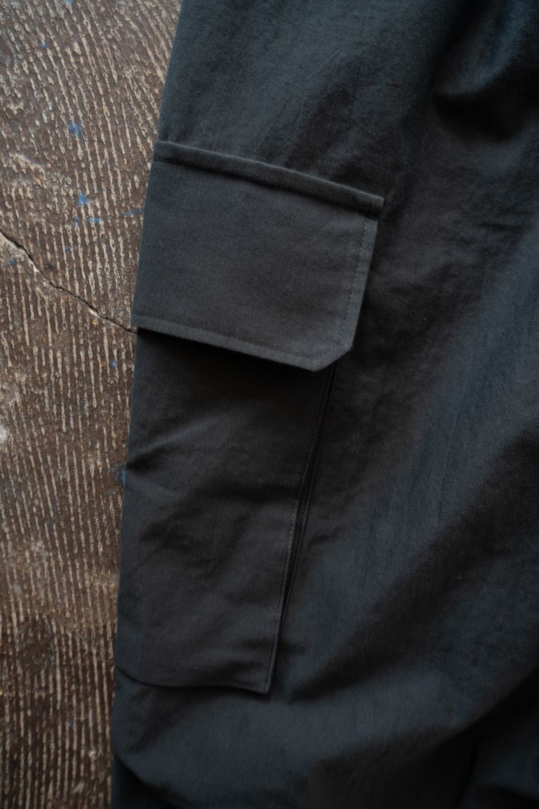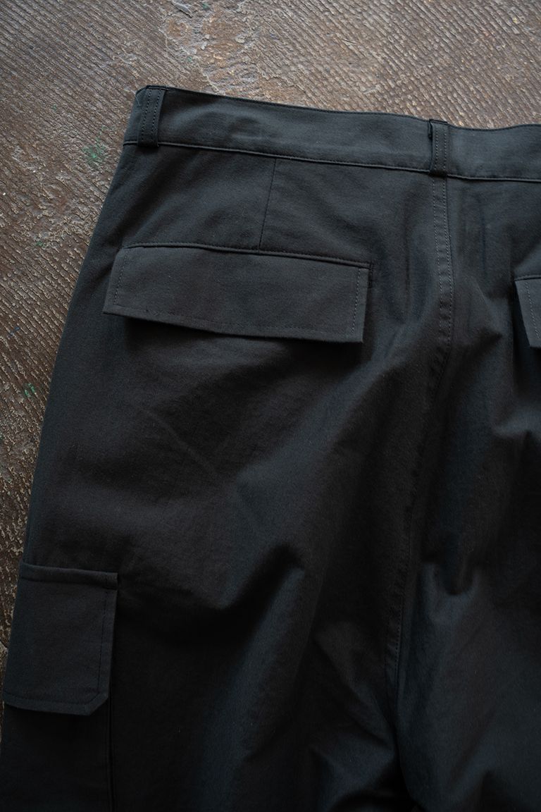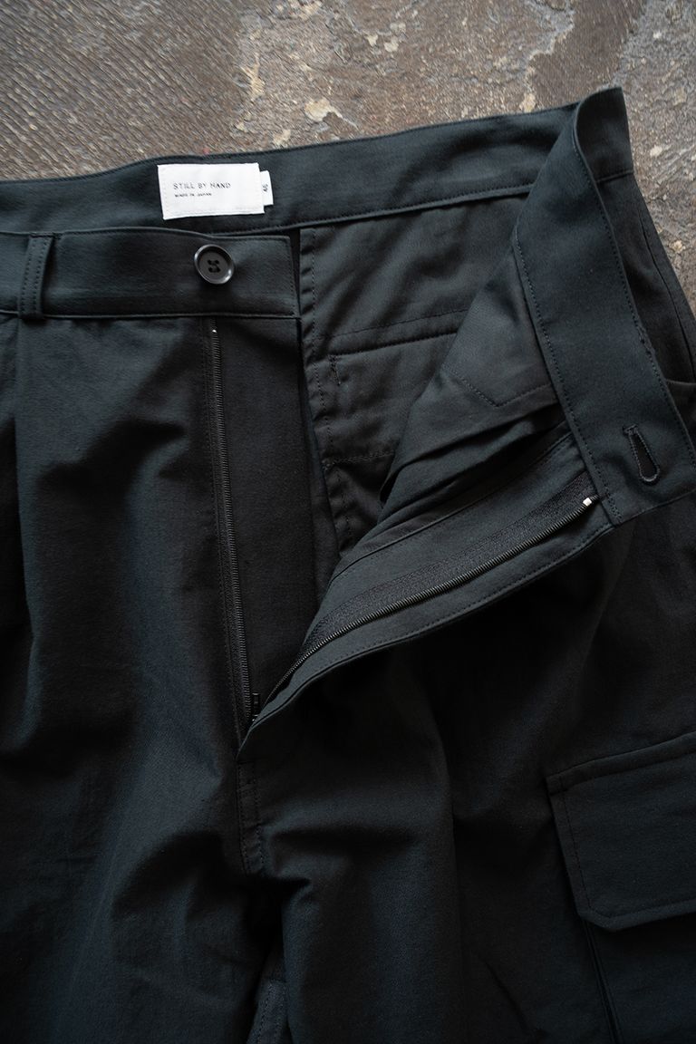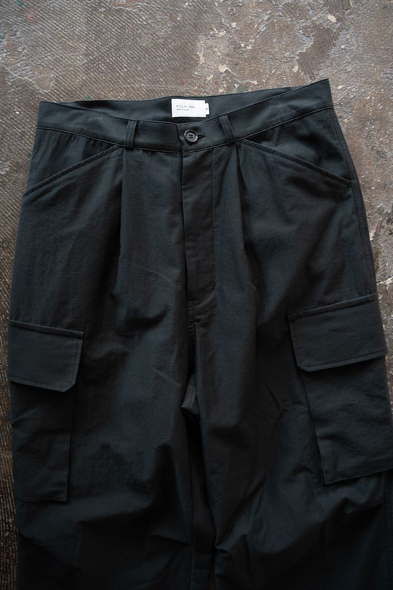 フロントにはタックを入れており、無骨なイメージのカーゴパンツでありながら、スラックスのような落ち着きのある上品な雰囲気に仕上がっております。