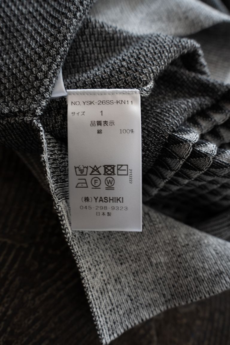 YASHIKIでは定番となっている、着物をオマージュした形で、着用時に大きく肩が落ちて柔らかい印象となるのが特徴です。半袖ではありますが、肘に掛かる程の丈となり、リラックスした印象です。
