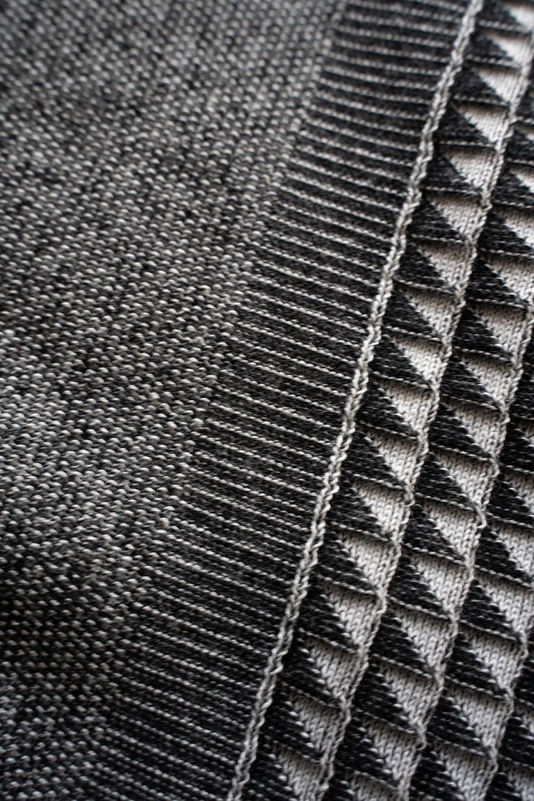 袖口には、YASHIKIのアイコンである矢絣柄の編み地が入ります。