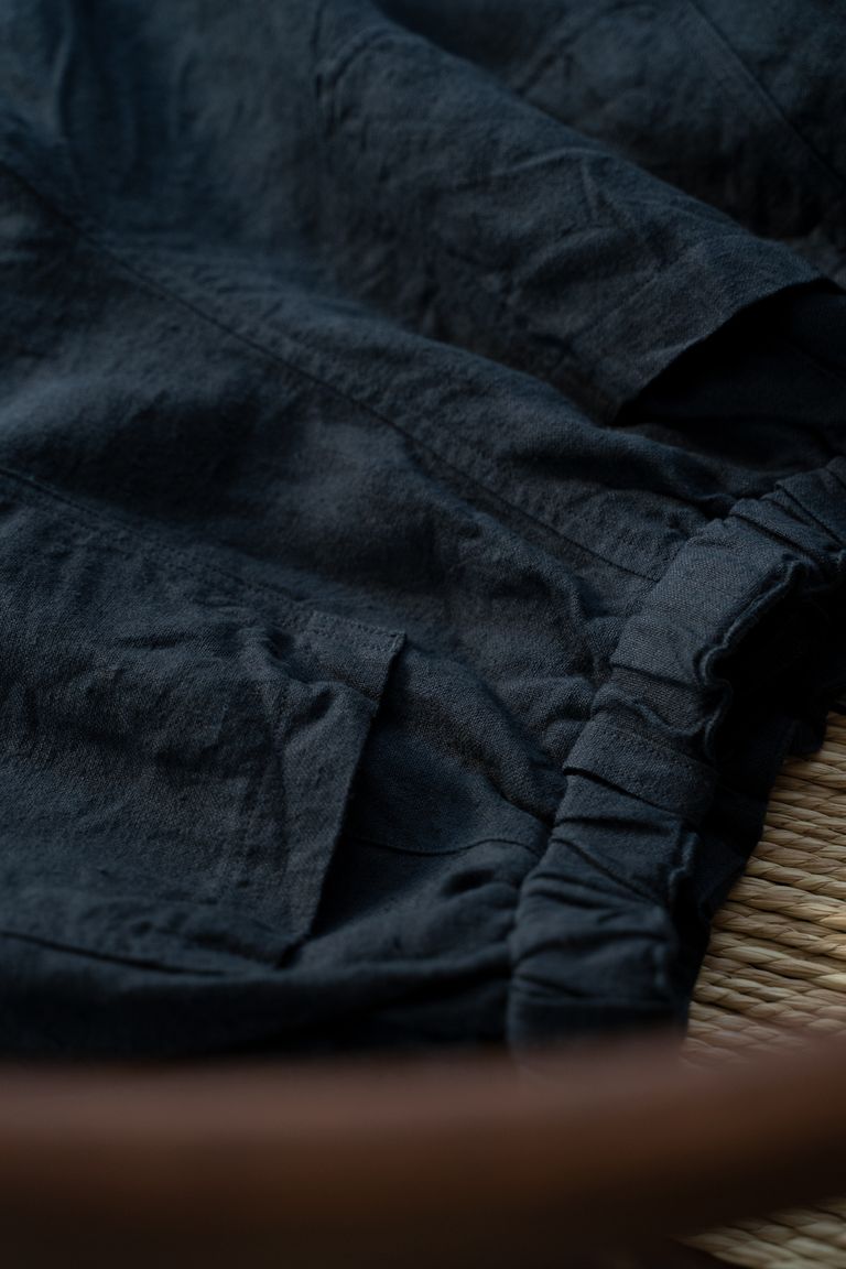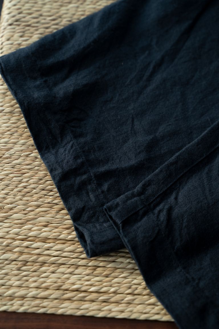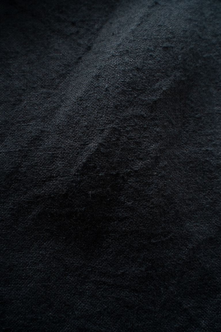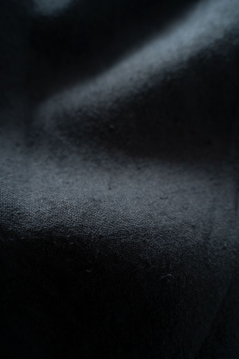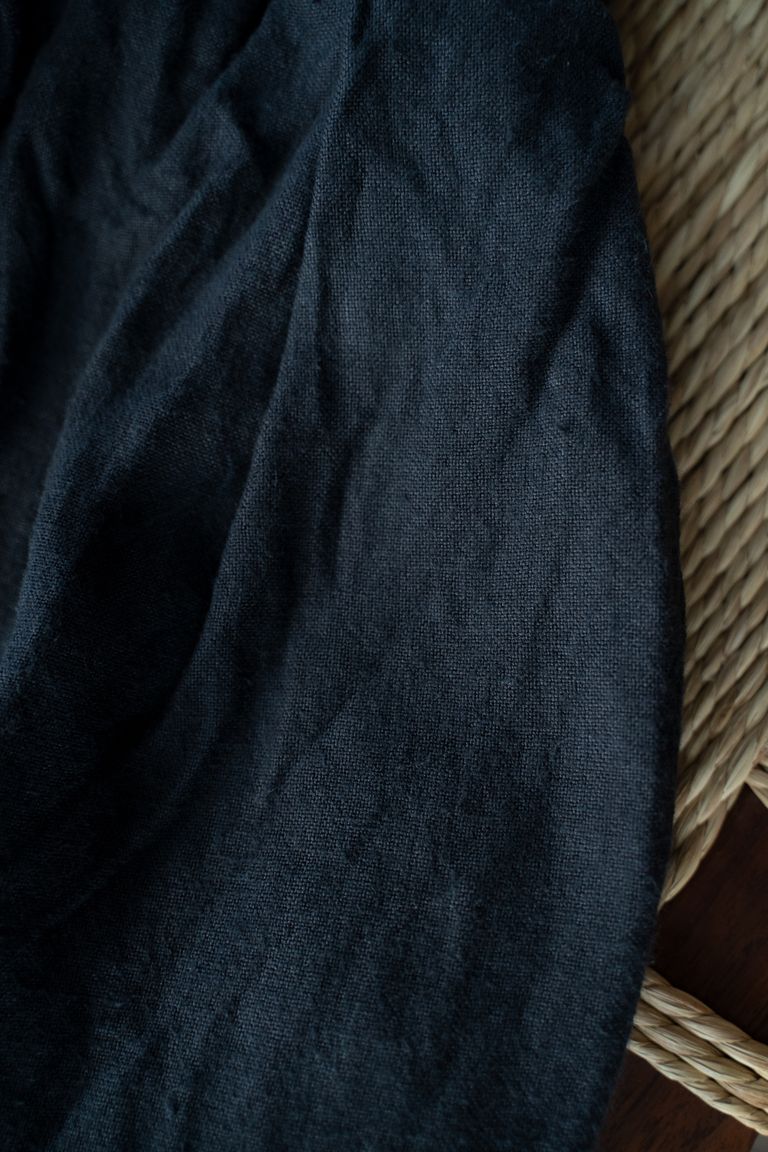 こちらの作品では、太番手の大麻(※)100%の糸で織り上げ、起毛加工を施した生地を使用しております。