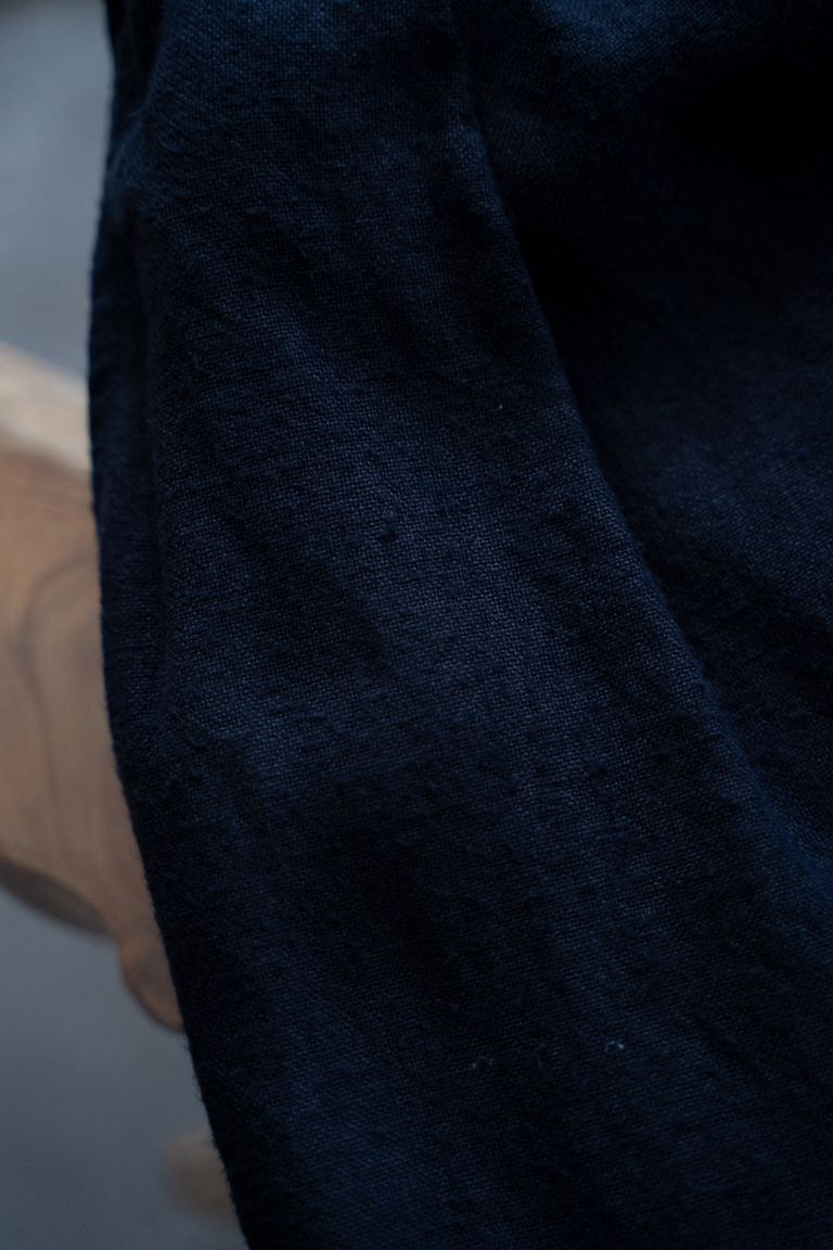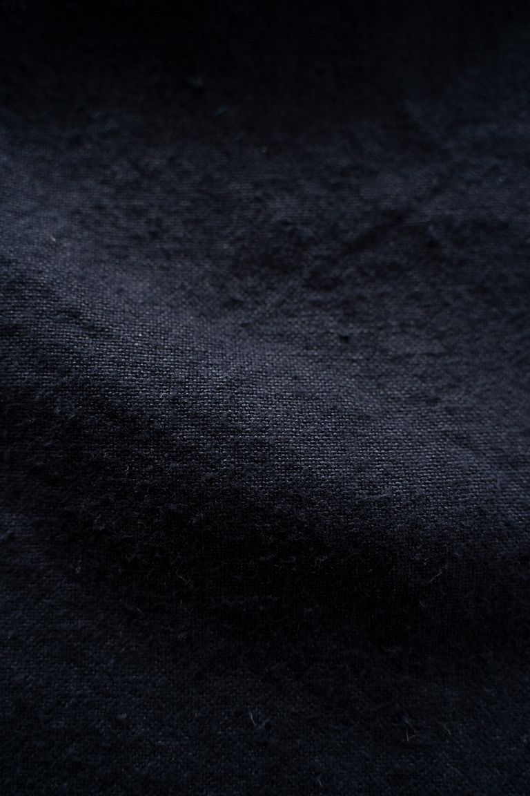 こちらの作品では、太番手の大麻(※)100%の糸で織り上げ、起毛加工を施した生地を使用しております。