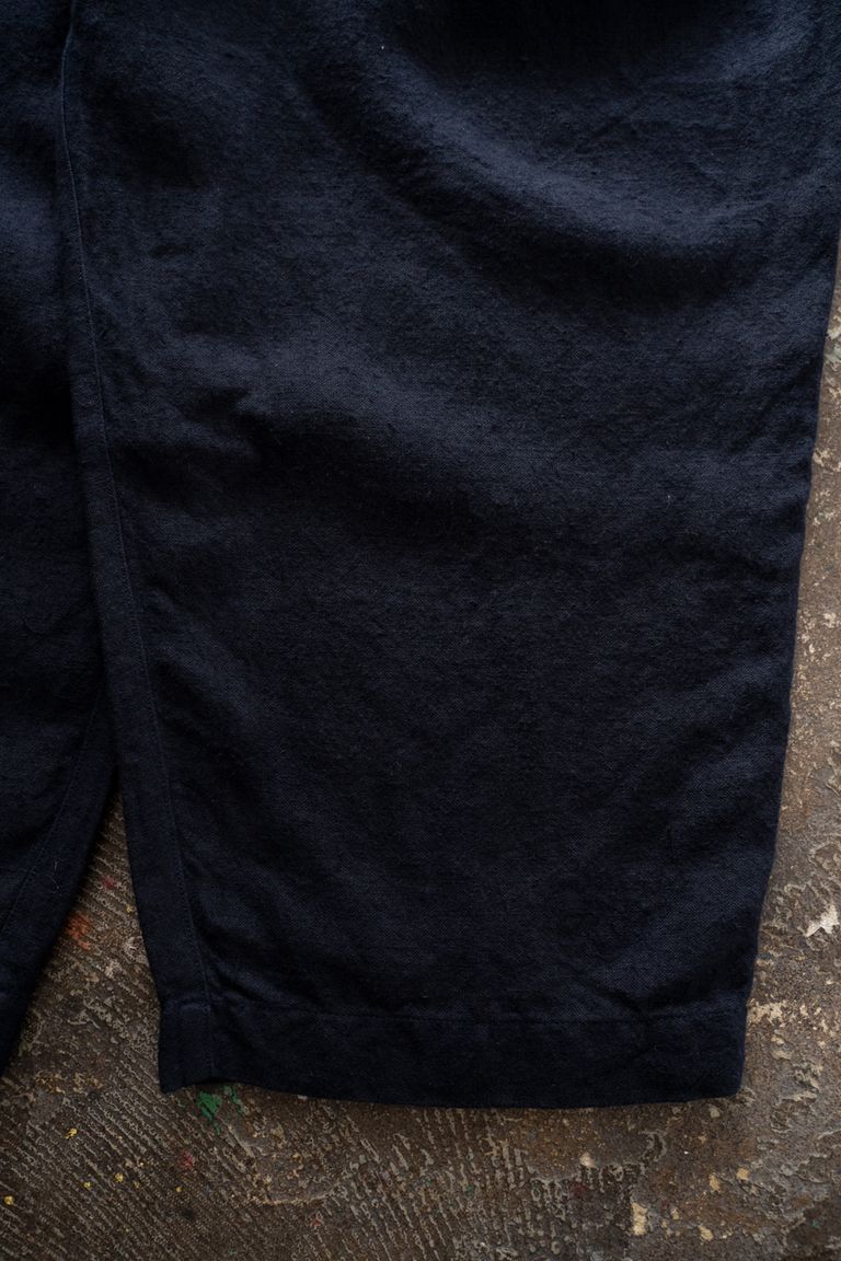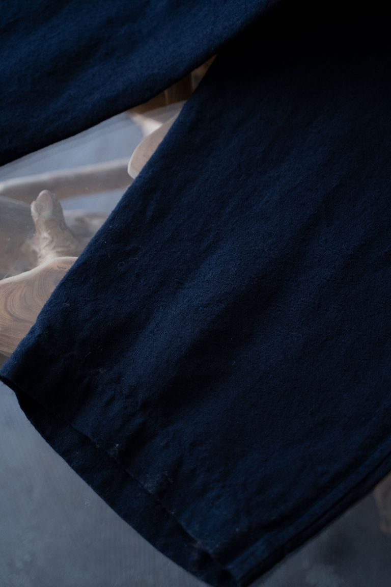 起毛加工による表面には毛羽立ちのおかげで、穿き初めから肌馴染みが良く、着用と洗いを重ねる程に、より風合いが増してゆきます。