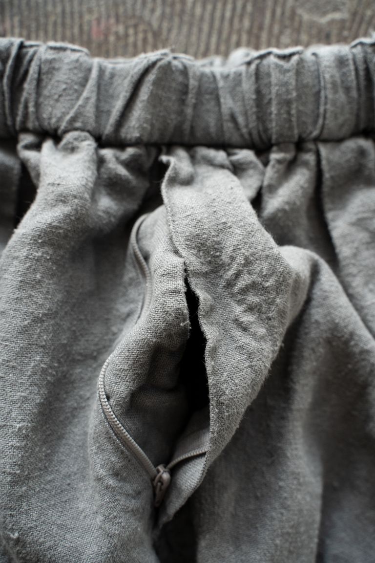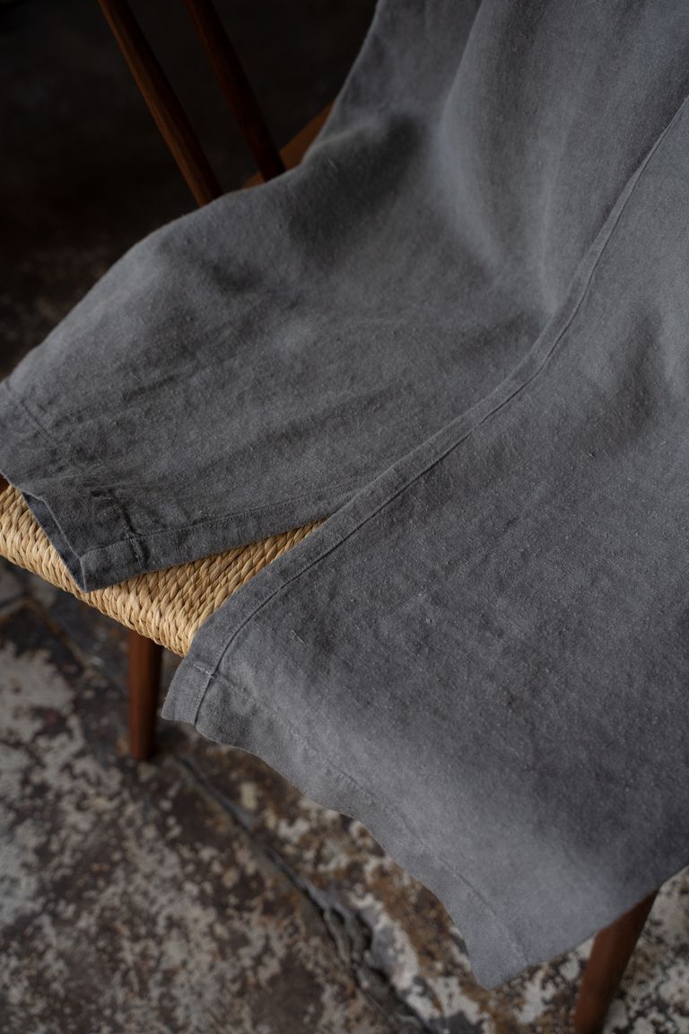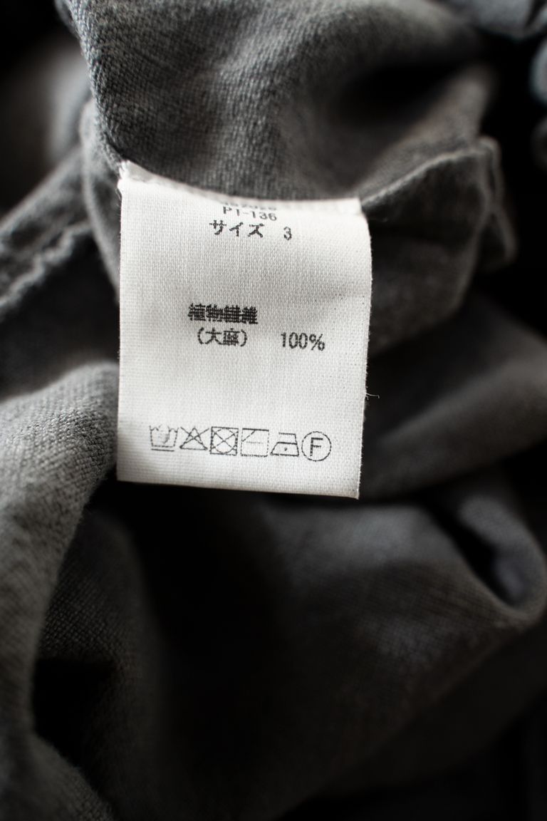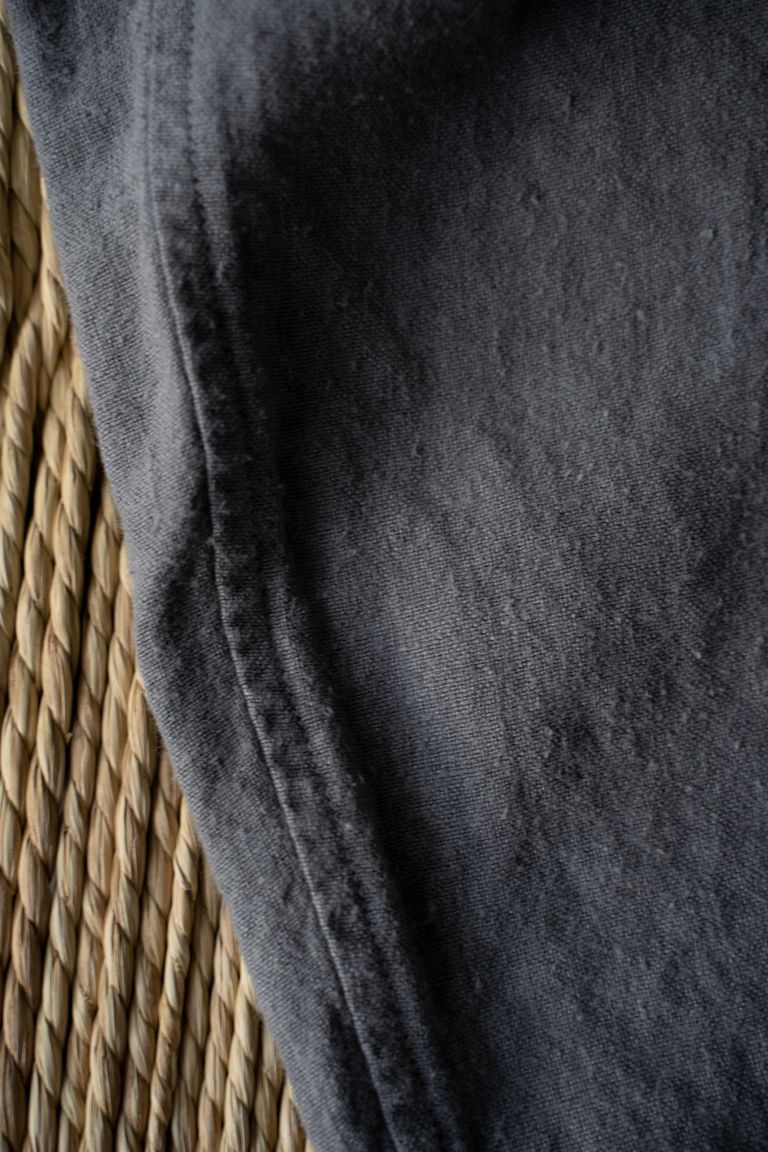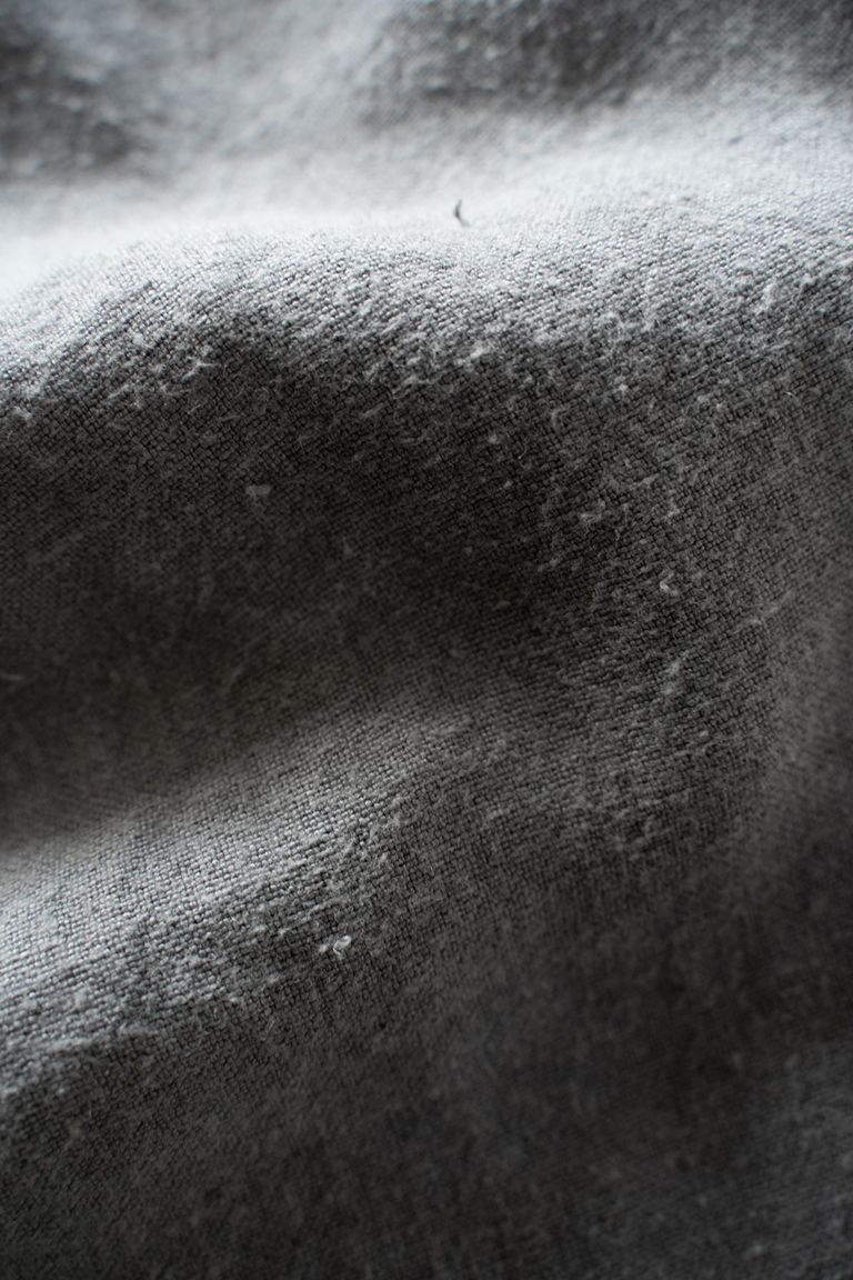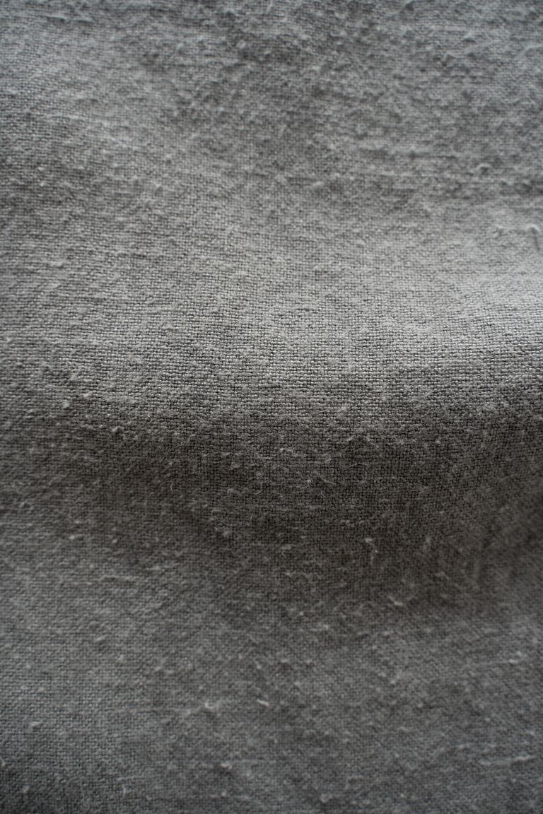 こちらの作品では、太番手の大麻(※)100%の糸で織り上げ、起毛加工を施した生地を使用しております。
